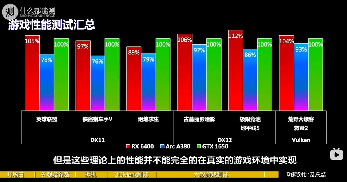 Сама компания давала понять, что Arc A380 сможет превзойти Radeon RX 6400. Судя по первым тестам, это не так: в реальных играх карта Intel работает медленнее.