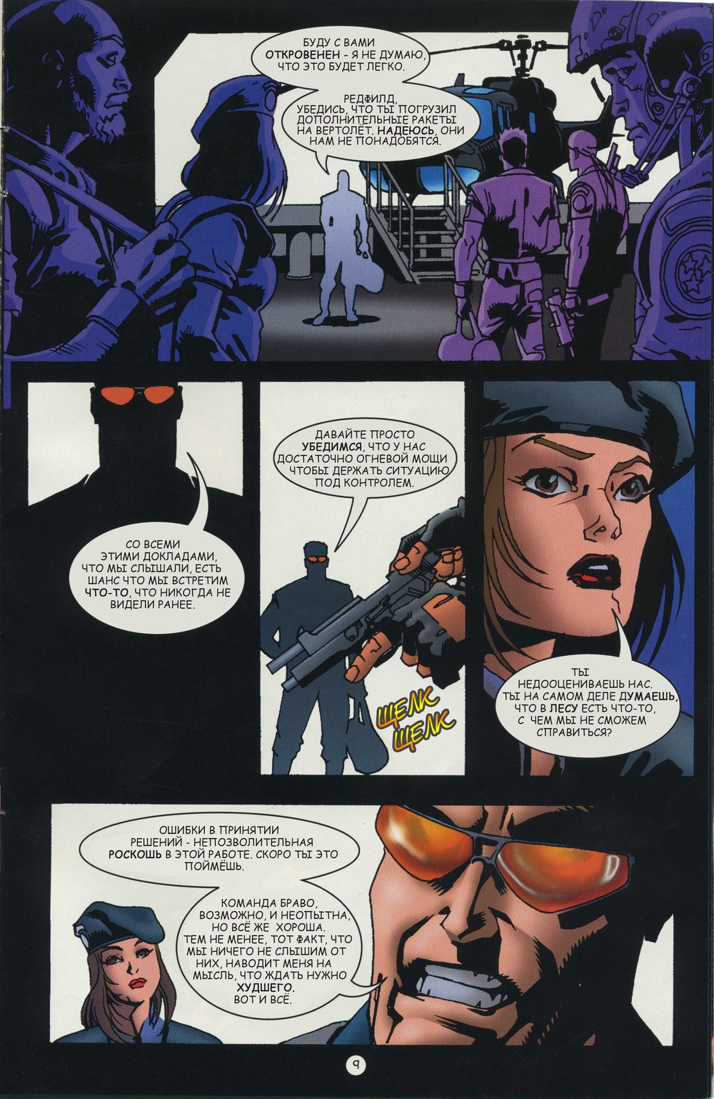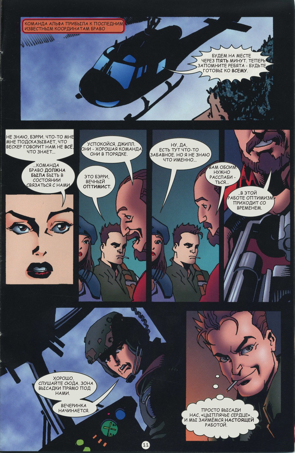 Команда Альфа через 5 минут должна быть на месте высадки команды Браво. Джилл чует неладное в словах Вескера, а Крис, с сигаретой в зубах, готов идти в бой... Да, комикс, вышедший в США, имеет то, что из Американской версии игры вырезали... Сигарета... Такие вот двойные стандарты США во всей красе.