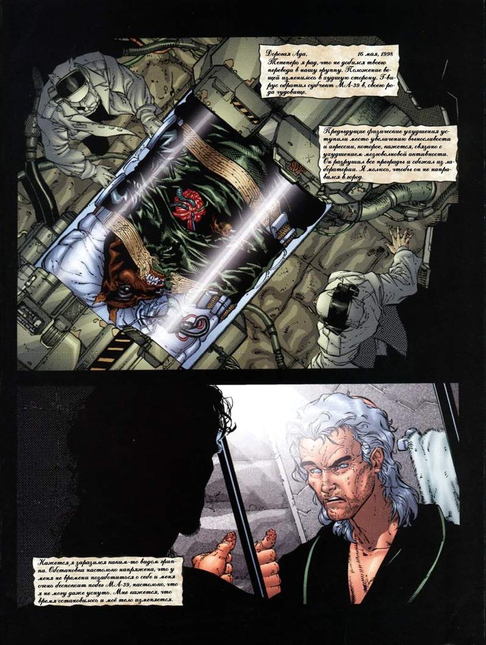 Джон указывает, что МА-39 сбежал, а сам он заразился каким-то гриппом. Как понятно из комикса, Джон не знал, что работает над биологическим оружием. Более того, Джон знал про субъект Т-002, но не знал, что это. Только под конец своей жизни, он стал догадываться о том, что скорее-всего, он обманным путём работал над биологическим оружием.