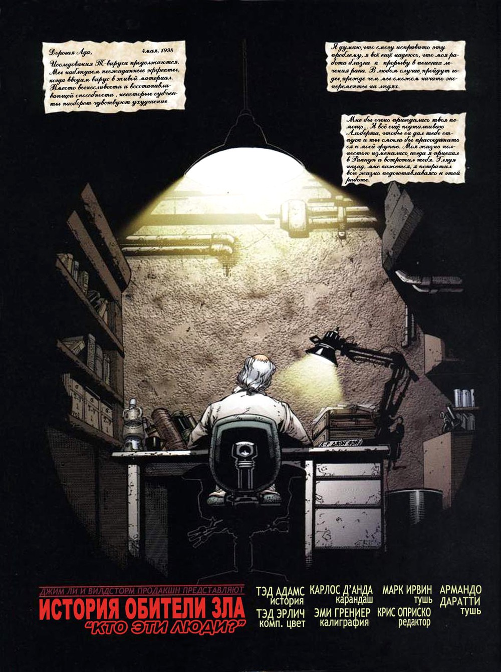 Однако, после, комикс демонстрирует читателям того, о ком мы могли читать лишь в файлах первой части и того, кого искала Ада Вонг во второй – Джона. Он пишет дневник, в котором описывает всё то, что случилось с ним в период до заражения. Он работал над улучшением Т-вируса, не зная его истинного предназначения. Письмо он адресует своей возлюбленной – Аде Вонг. В письме, Джон указывает, что пытался добиться у Альберта Вескера отпуска для Ады... Вот тут начинается очередная нестыковка, кончено, на момент выхода комикса доподлинно было неизвестно, на кого работала Ада, тем не менее последующие игры рассказали кто и зачем послал Аду в Раккун-Сити и зачем ей Джон.