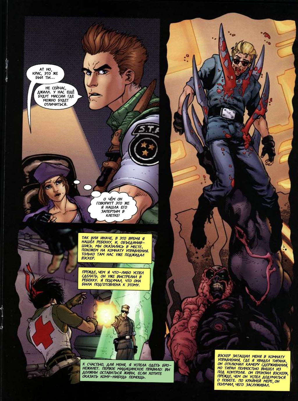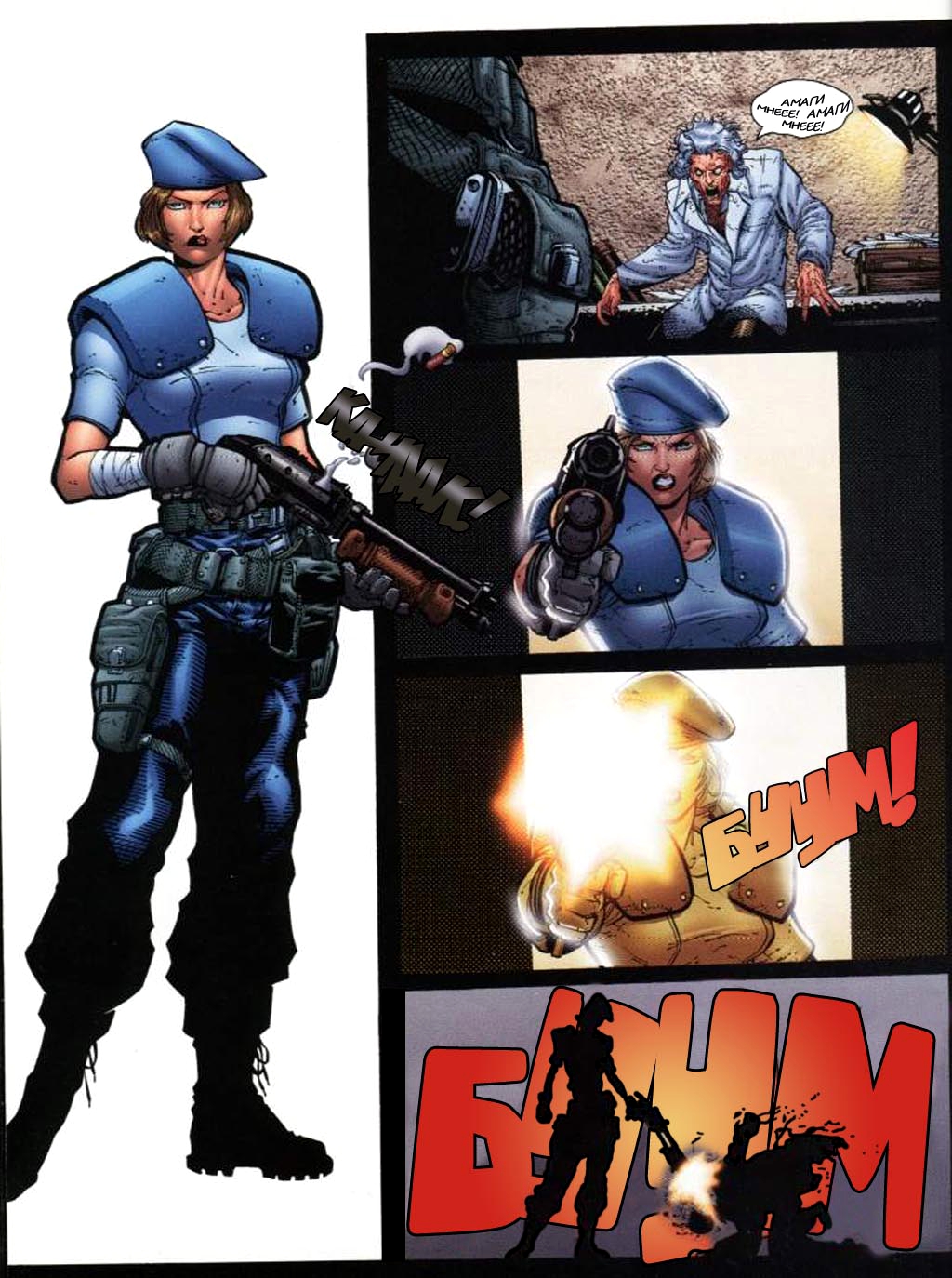 Более того, в комиксе, последний бой с Тираном вели все выжившие члены отряда S.T.A.R.S... По сюжету Криса... На кадрах видны Джилл и Ребекка.