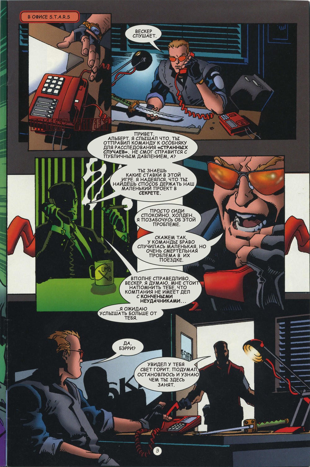 После бурного спора и рассказа всех фактов которые, в общей целостности, соответствуют игре, комикс переносит нас в события Resident Evil 2. Впрочем, у нас выпуск про первую часть, вторую часть серии оставим на потом. На этой ноте, повествование первой части в комиксе завершены. Однако, кое-что связанное с событиями до первой части игр проясняются в третьем выпуске комикса.