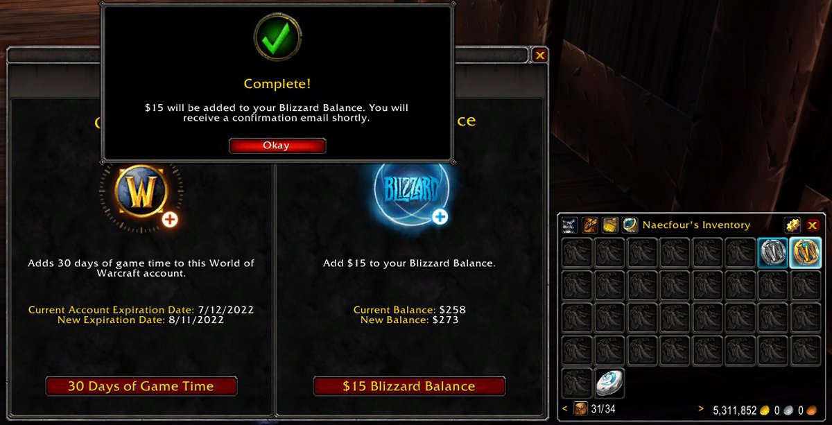 У daymeeuhn на счету в World of Warcraft имелось чуть больше 600 миллионов золотых. Благодаря манипуляциям с токенами золото из World of Warcraft превратилось в $48648, потраченные на микротранзакции в Diablo Immortal.