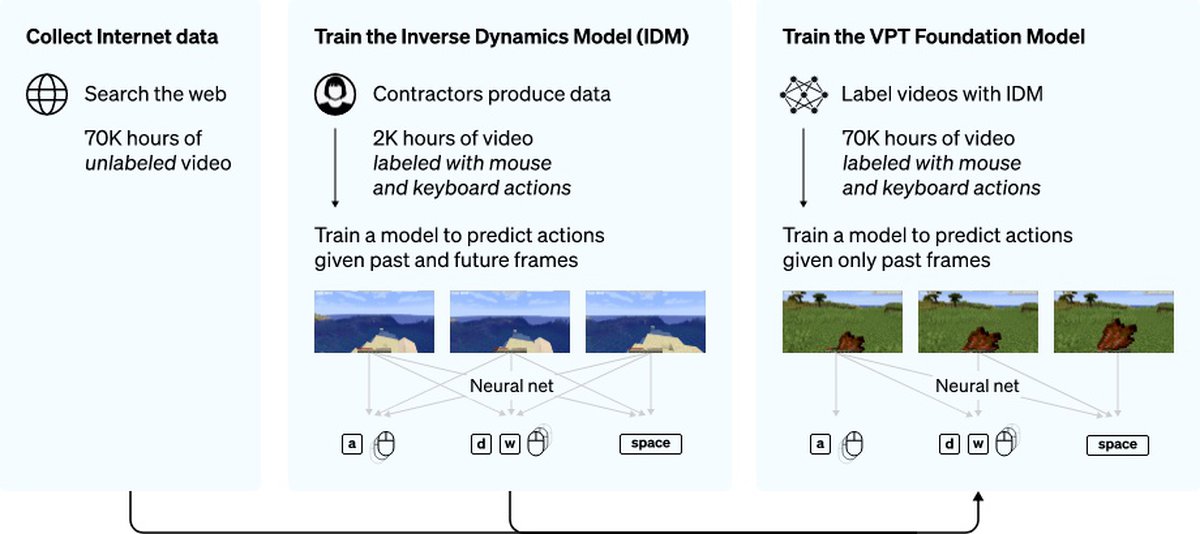 - Для обучения ИИ было собрано 70 тысяч часов геймплея в Minecraft.