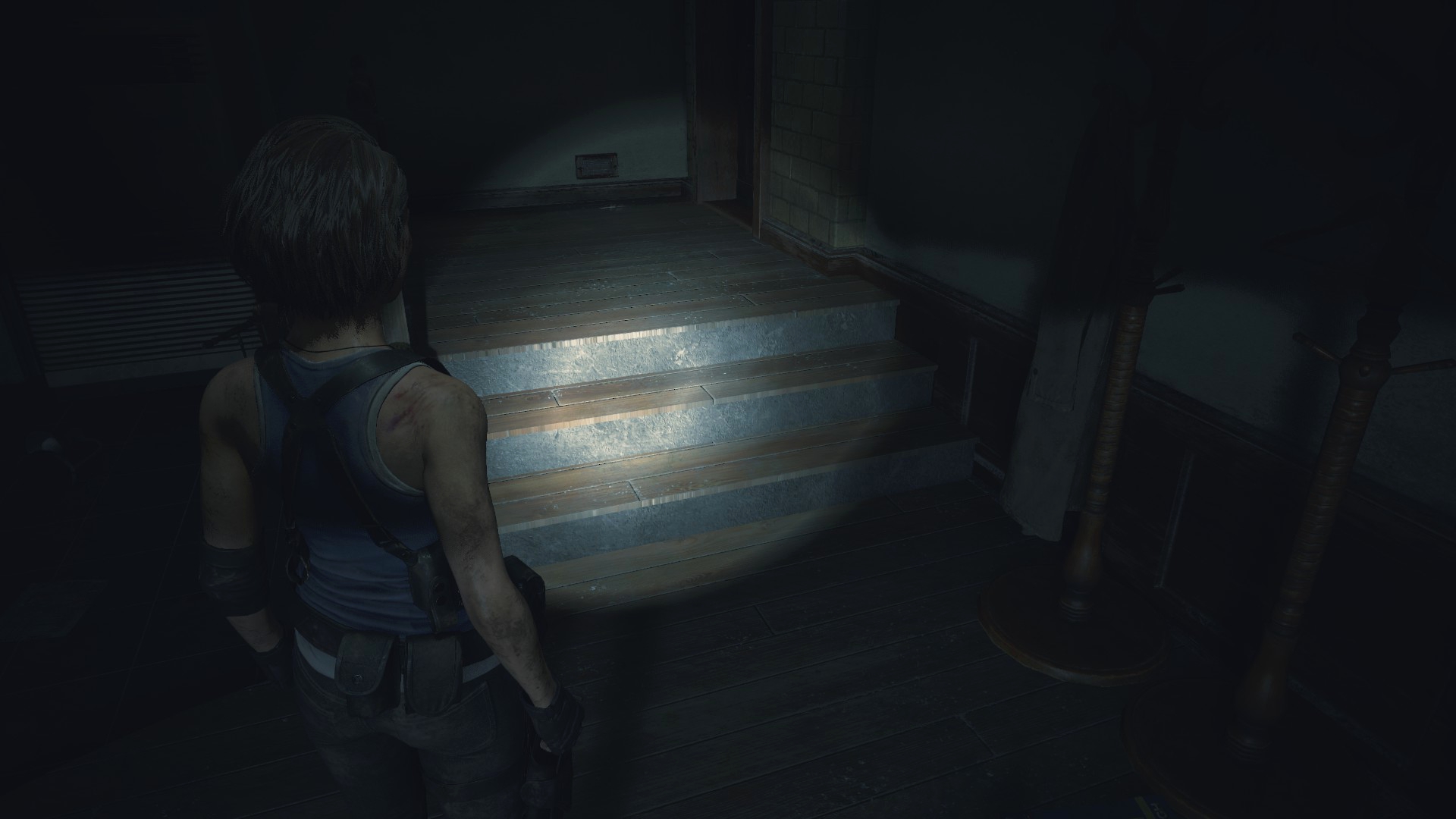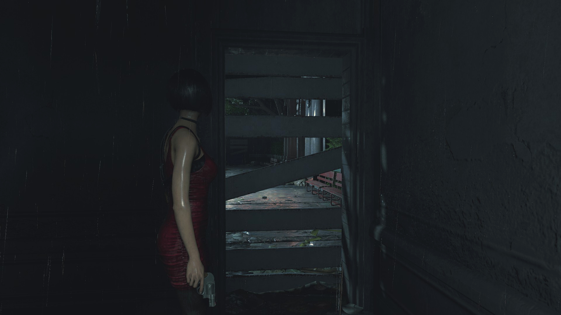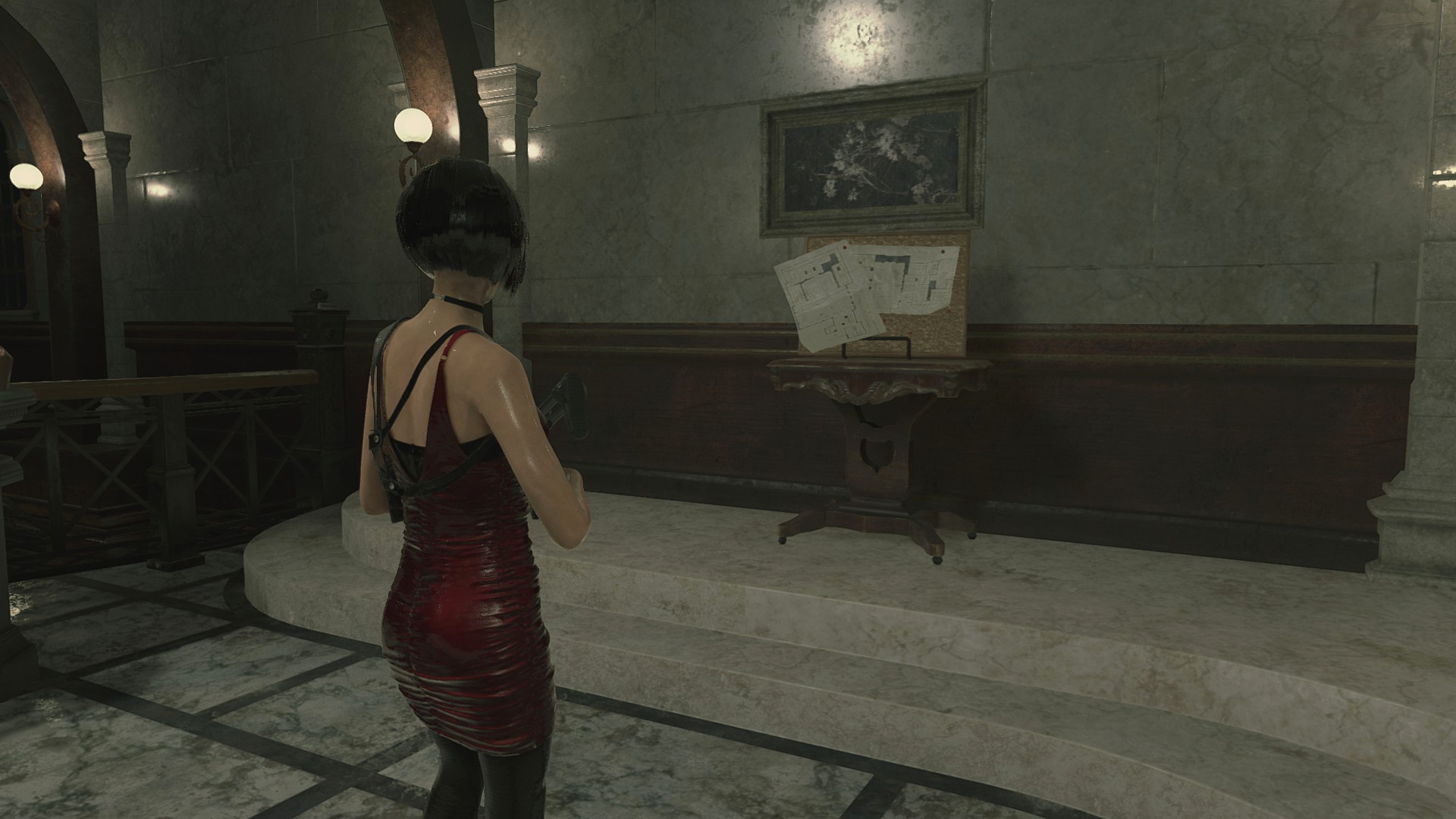 Начав подниматься на второй этаж, можно заметить, что убитого зомби, возле жалюзи, ещё нет, как и дыры в стене на третьем этаже. К слову, похожие дырки в стене делает Немезис на протяжении игры, а если забежать за карту R.P.D. то похожую дыру в огне можно отыскать. Самое интересное, R.P.D. – это не часть карты всей игры, а новый участок, не переходящий в другую локацию.