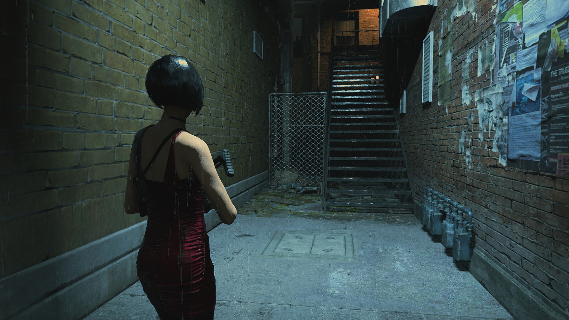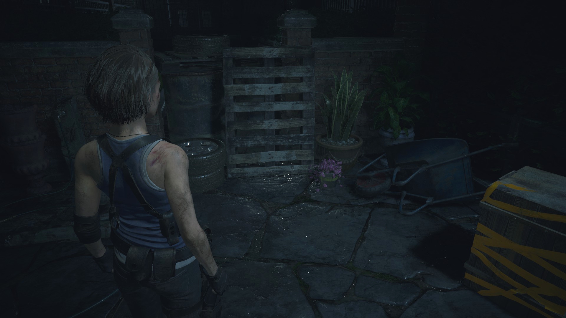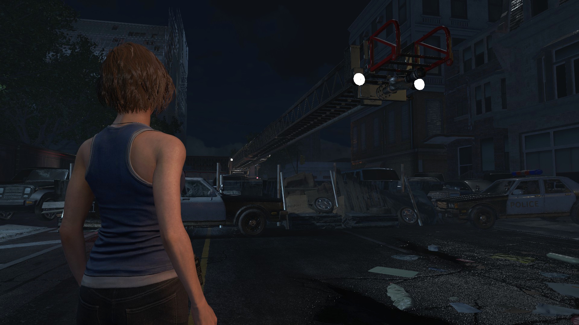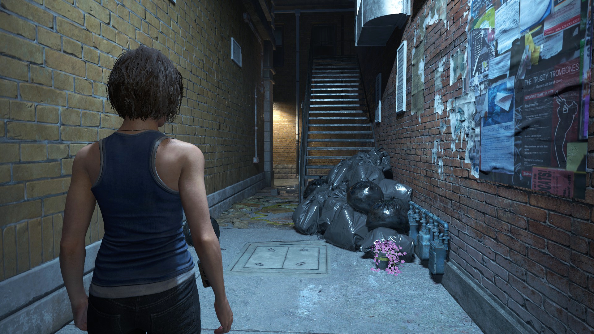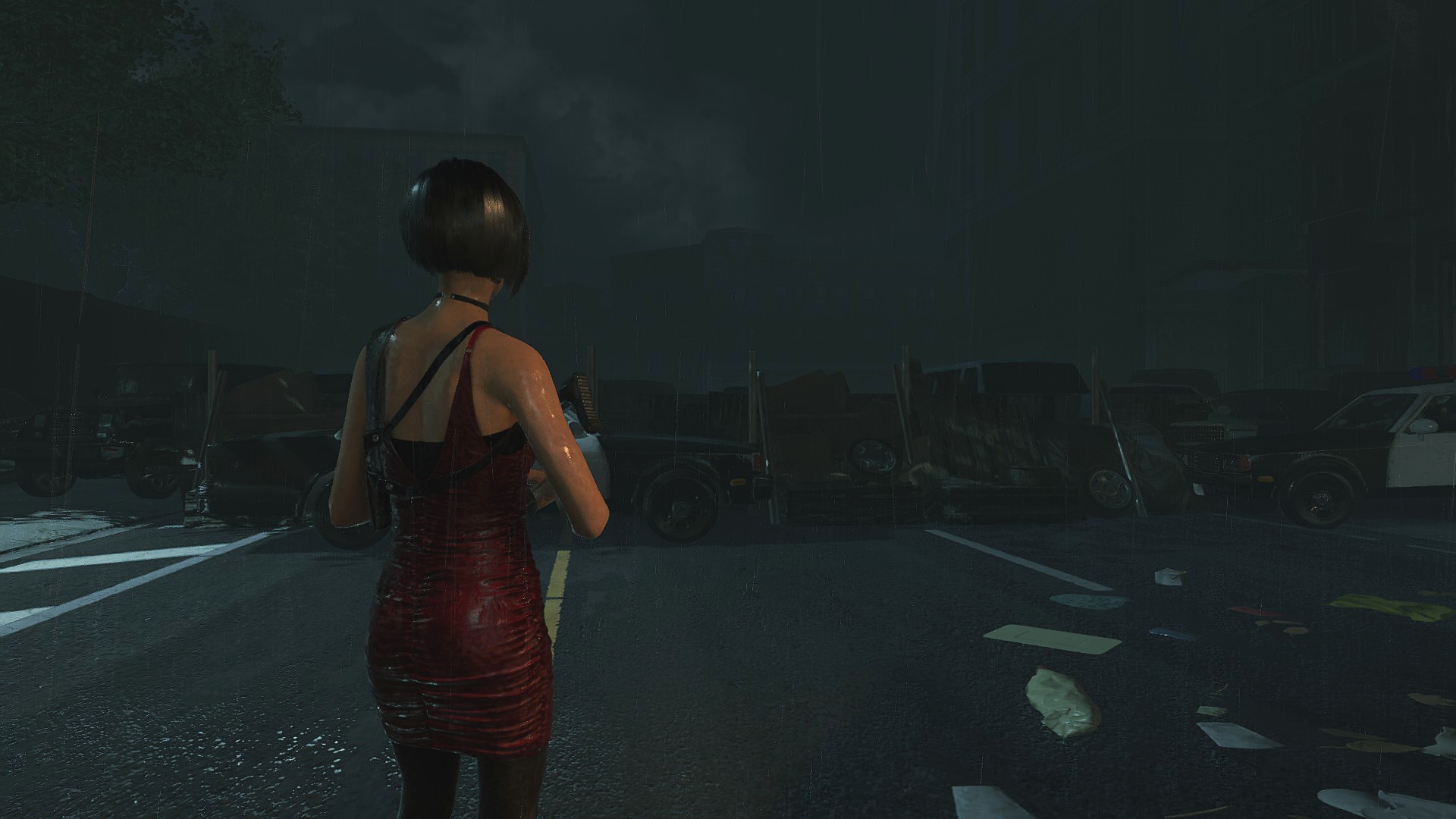 Ещё странности поджидают нас возле магазина Кендо, ибо там машина и баррикады переставлены... Более того, проход сзади магазина тоже был изменён, что идёт вразрез логике второй части. Выпилили забор, забросали лестницу мусорными пакетами и всё это для того, чтобы игрок не забрёл в другую части локации... Очень тупое решение, да и пройтись по локации из Resident Evil 2 всё-таки можно, используя тренер!