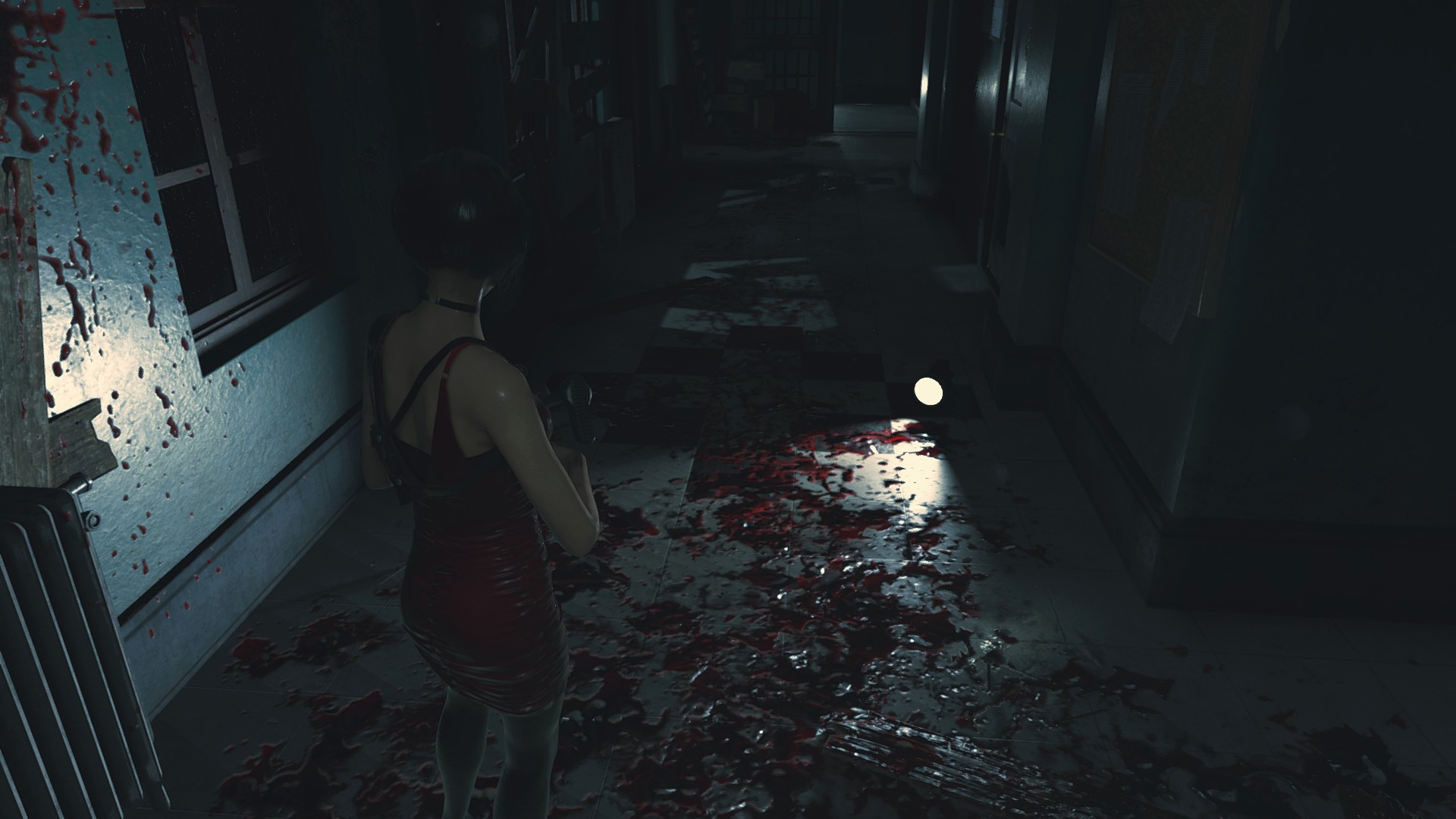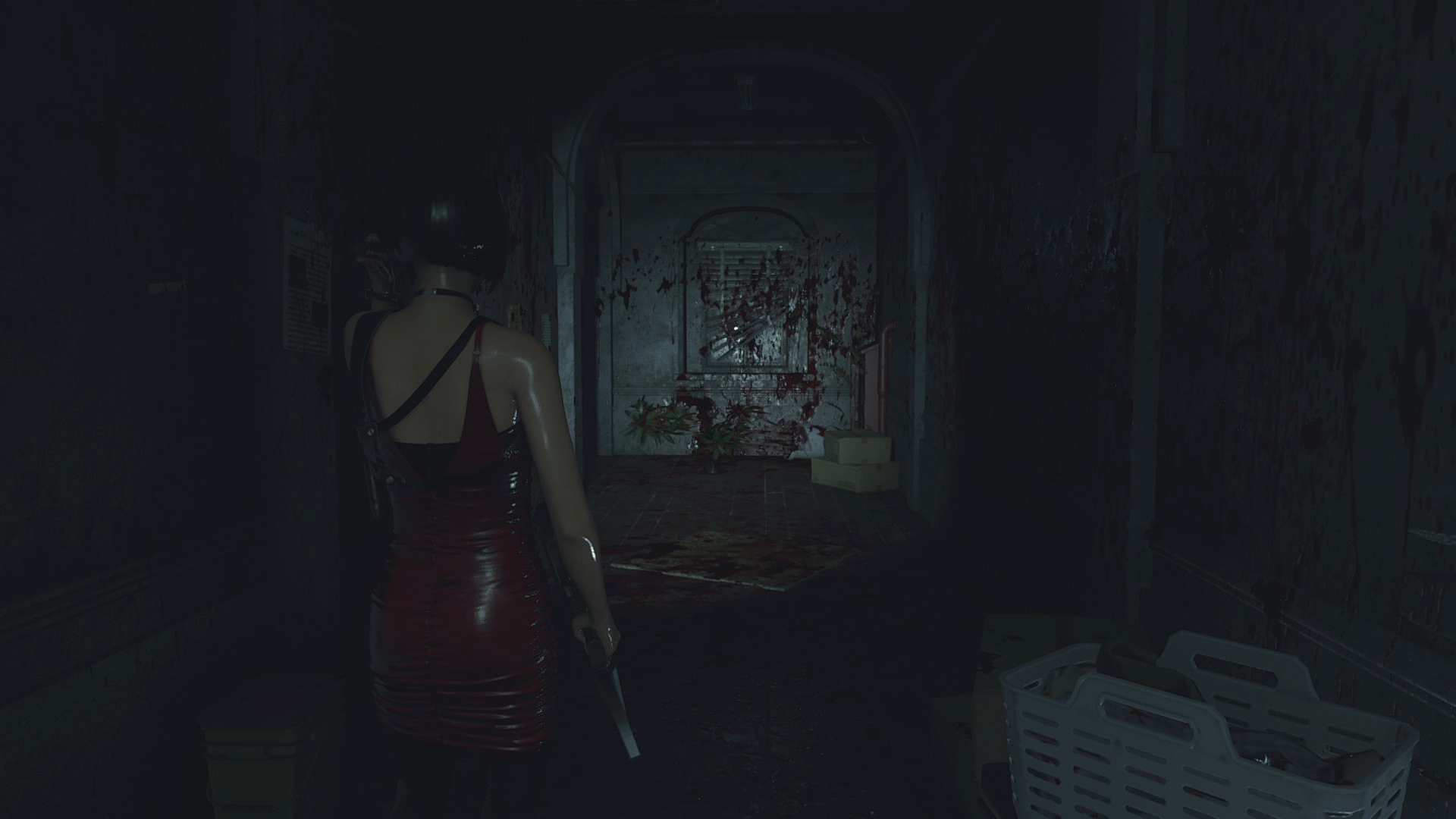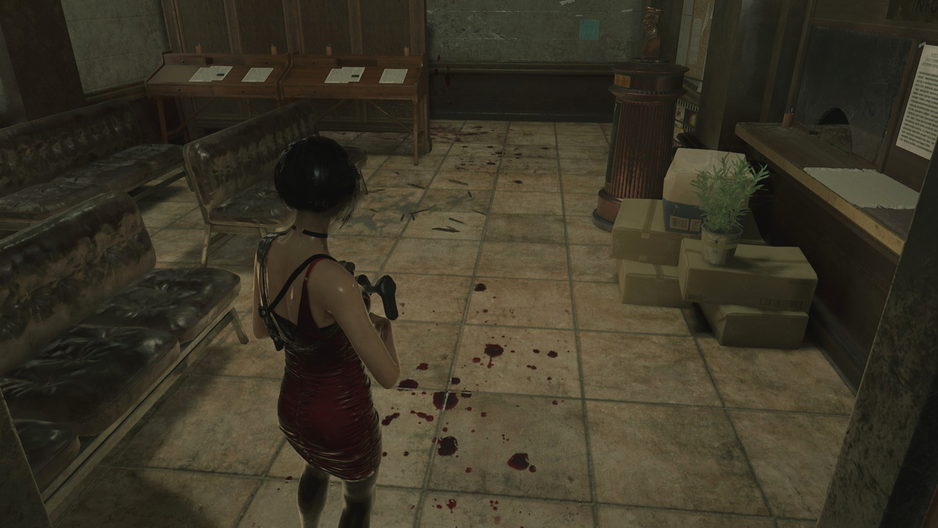 Войдя в здание полицейского участка начинаешь замечать кое-какие детали, которые к моменту второй части стали другими... К примеру, рычаг в холле больше не обмотан изолентой, да и крови на полу ещё нет. Но вот то, как кровь располагается в коридоре, в котором убивают двух полицейских... Странное, но всё-таки отличие, ибо крови во второй части на полу больше, чем на стенах, а вот в третьей как раз наоборот.