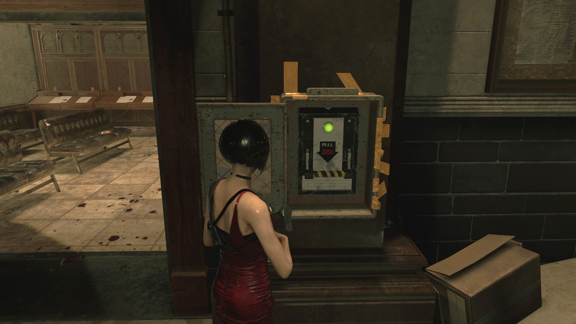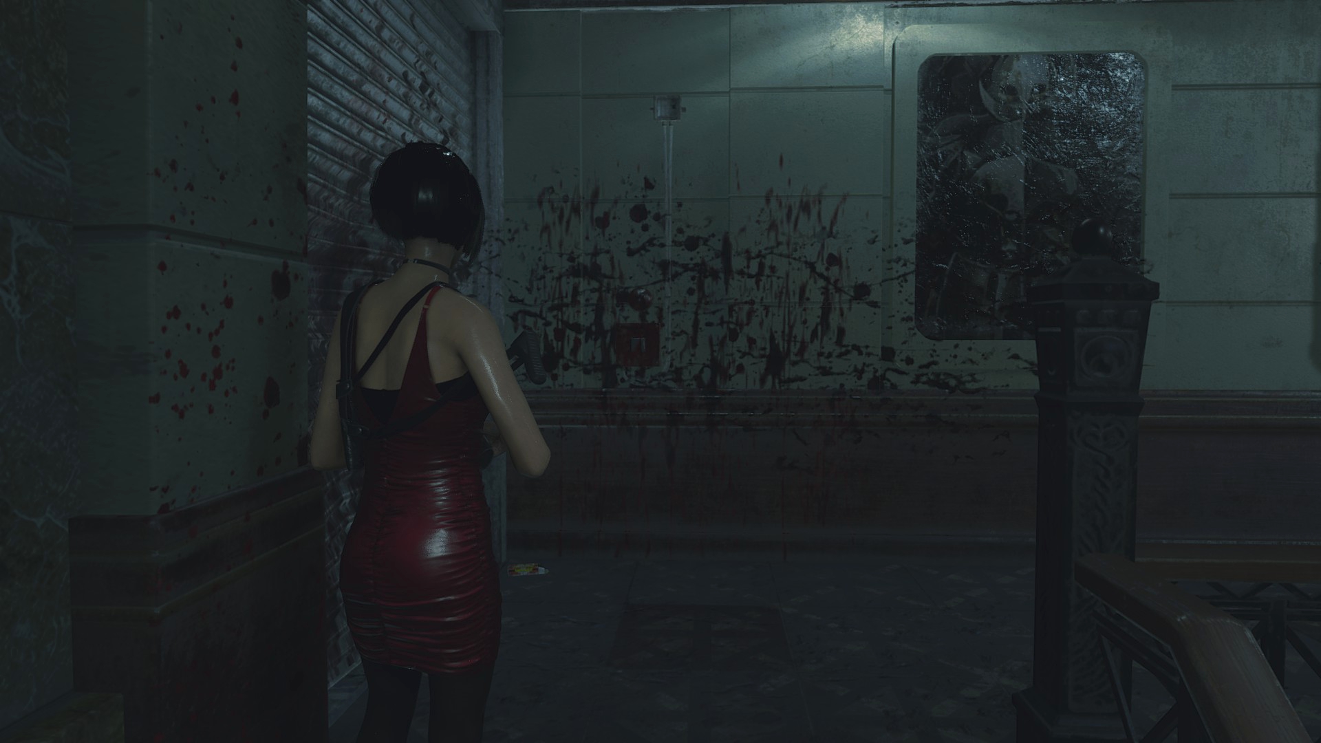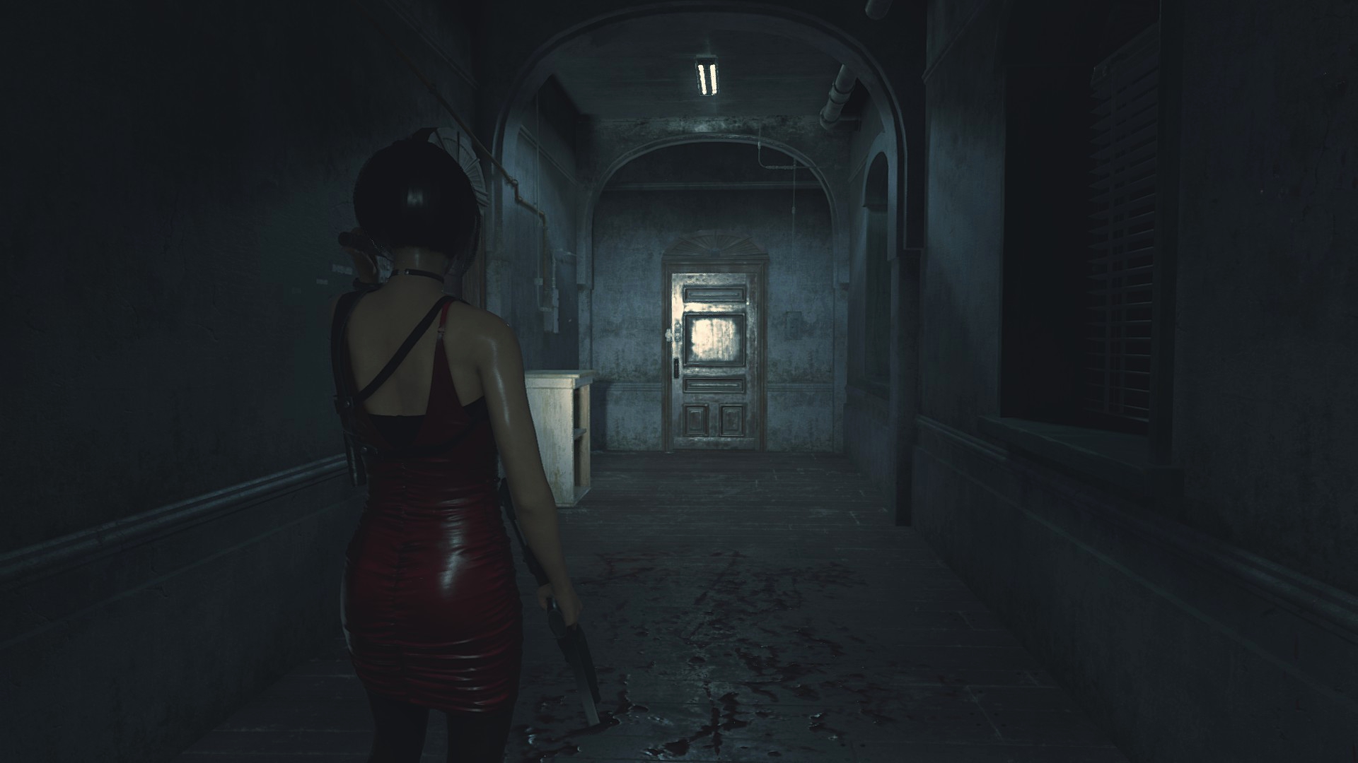 Войдя в здание полицейского участка начинаешь замечать кое-какие детали, которые к моменту второй части стали другими... К примеру, рычаг в холле больше не обмотан изолентой, да и крови на полу ещё нет. Но вот то, как кровь располагается в коридоре, в котором убивают двух полицейских... Странное, но всё-таки отличие, ибо крови во второй части на полу больше, чем на стенах, а вот в третьей как раз наоборот.