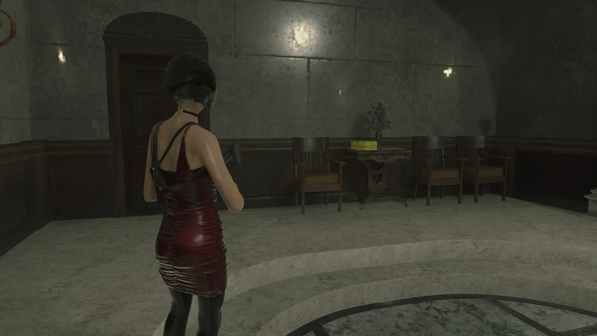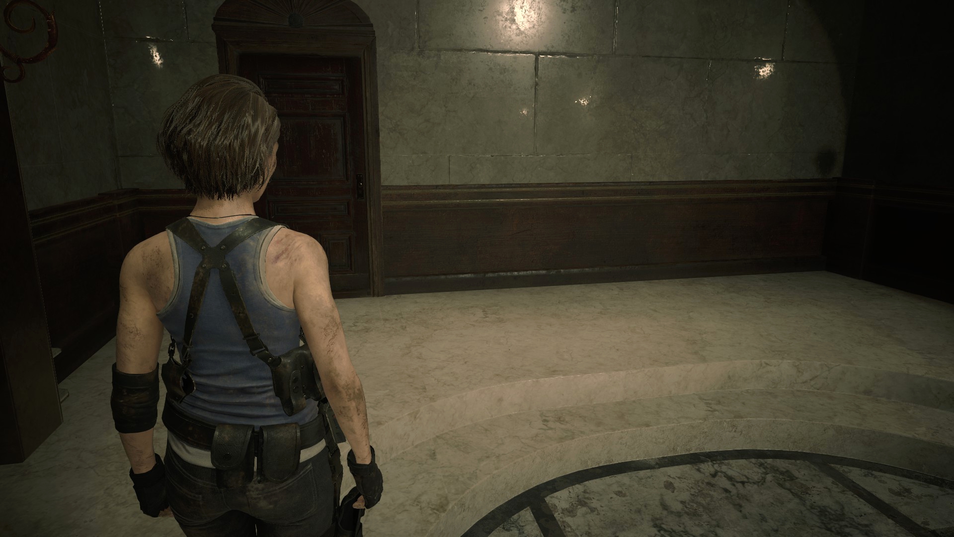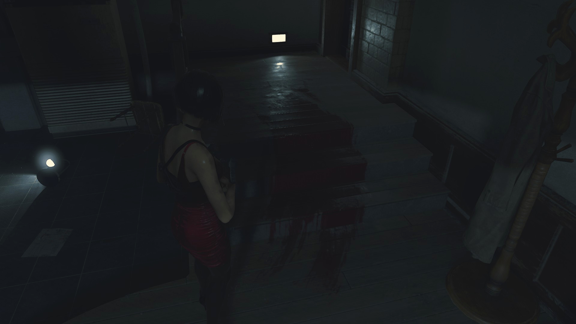 В офисе на первом этаже нет крови на лестнице, что можно списать на то, что Марвин только-только получил ранение... Правда, если в оригинальных играх у него были ключи, то в этих у него только блокнот, нож и ноутбук, а сама дверь заперта.