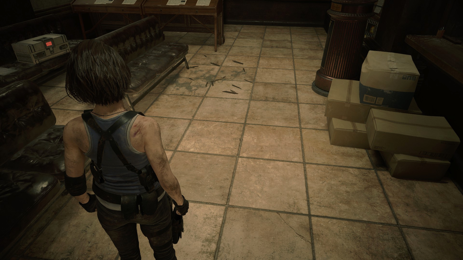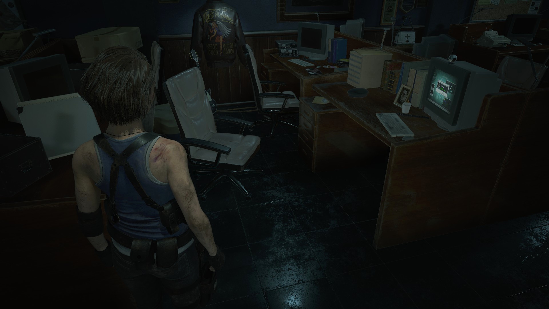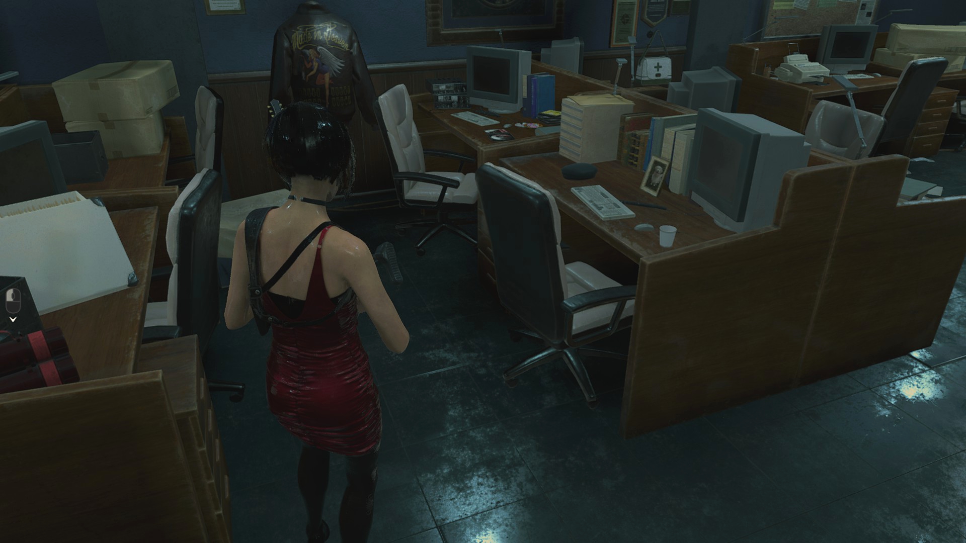 Офис отряда S.T.A.R.S. тоже изменился. Причем преимущественно место, где сидит Джилл... Туда добавили рабочий компьютер, веб.камеру и отодвинули стул... На самом деле, я считаю данную затею – тупой. Доктор Бард звонит на компьютер Джилл? Зачем и почему именно Джилл? Почему именно у неё одной есть веб.камера и куда она делась в Resident Evil 2? Тайрел украл, предварительно задвинув стул?