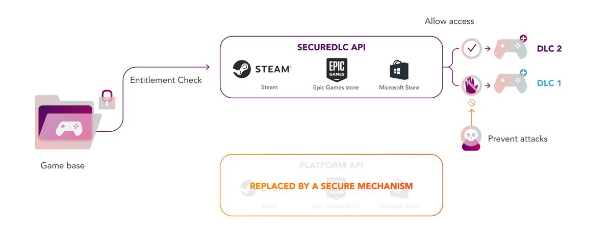 Решение компании предотвращает пиратство DLC. В Denuvo не описывают принцип работы SecureDLC, но утверждают, что она легко внедряется в существующие игры и не требует масштабного изменения исходников.