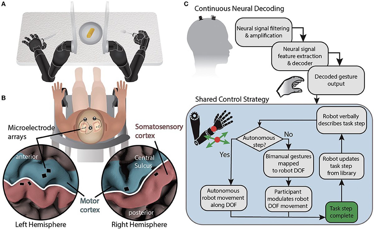 Исследователи из Университета Джона Хопкинса опубликовали научную работу, посвященную созданию интерфейса мозг-компьютер. С помощью этого интерфейса частично парализованный мужчина смог управлять манипуляторами, снабженными ножом и вилкой.