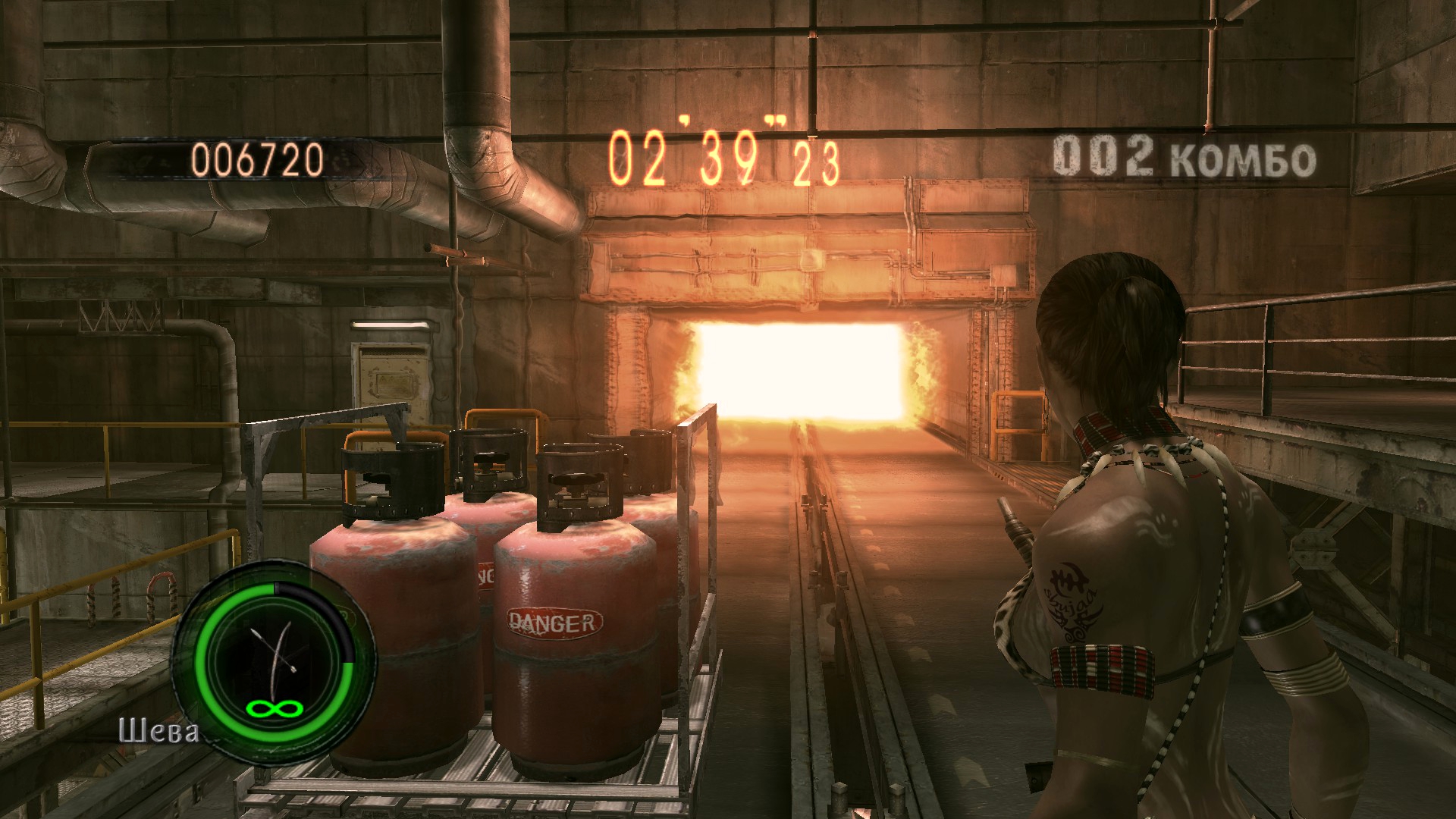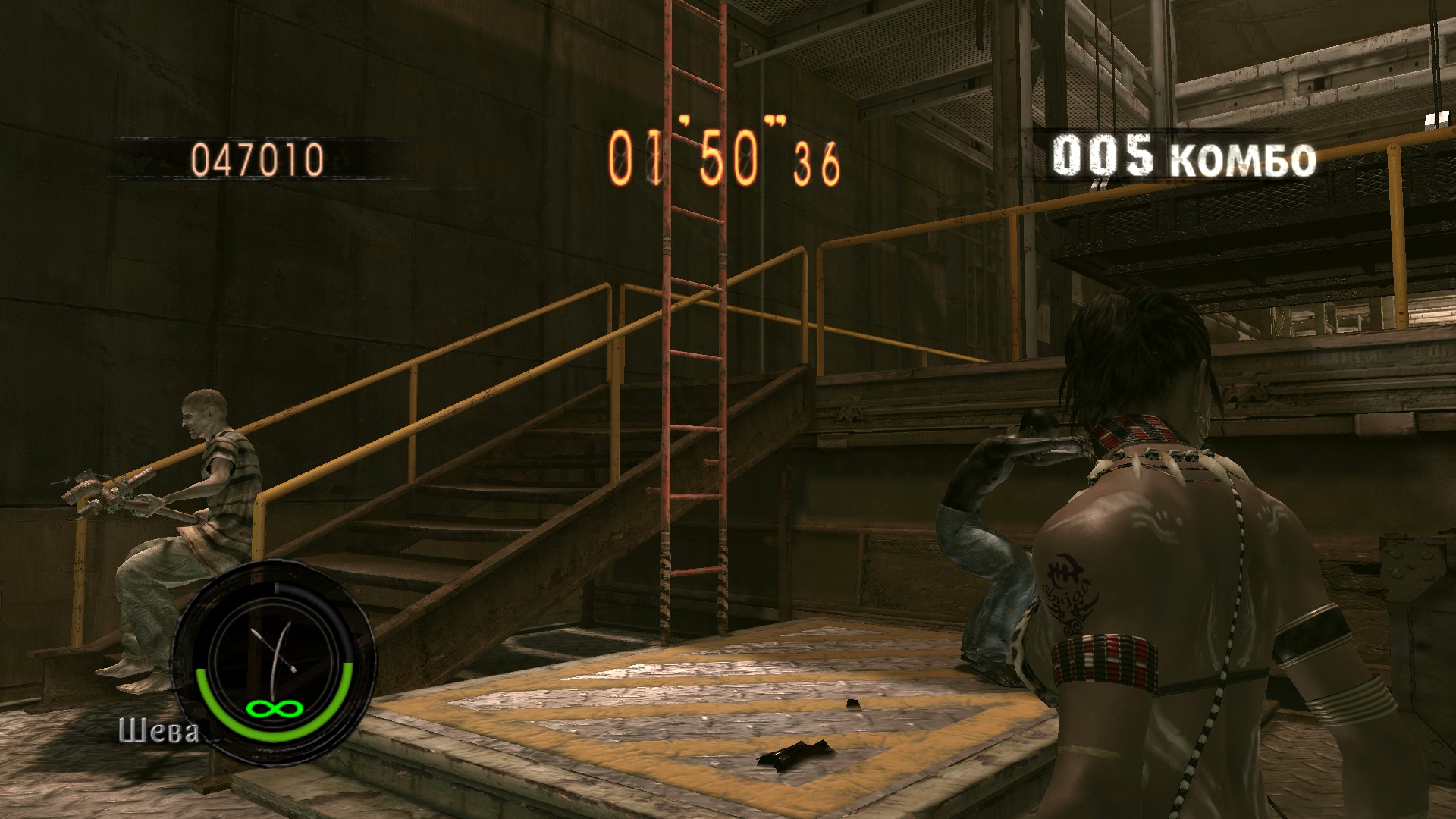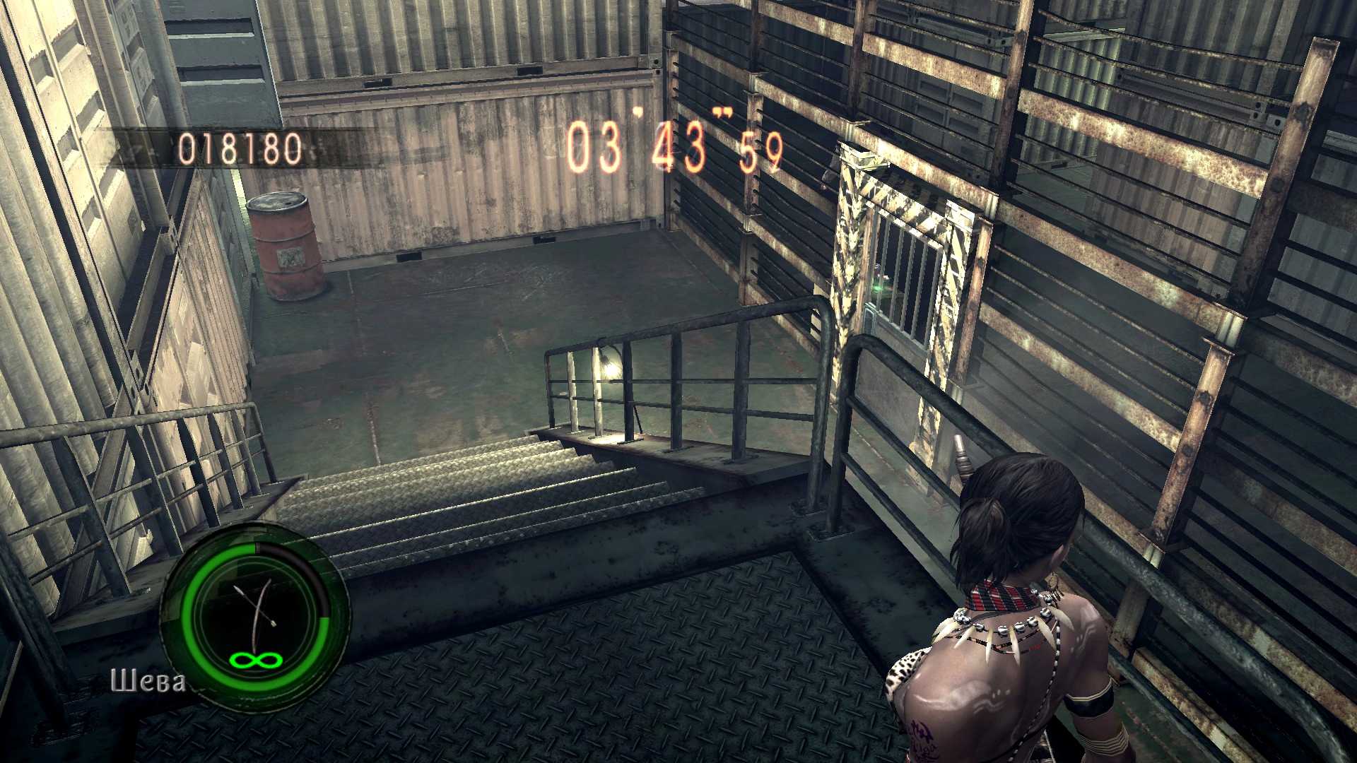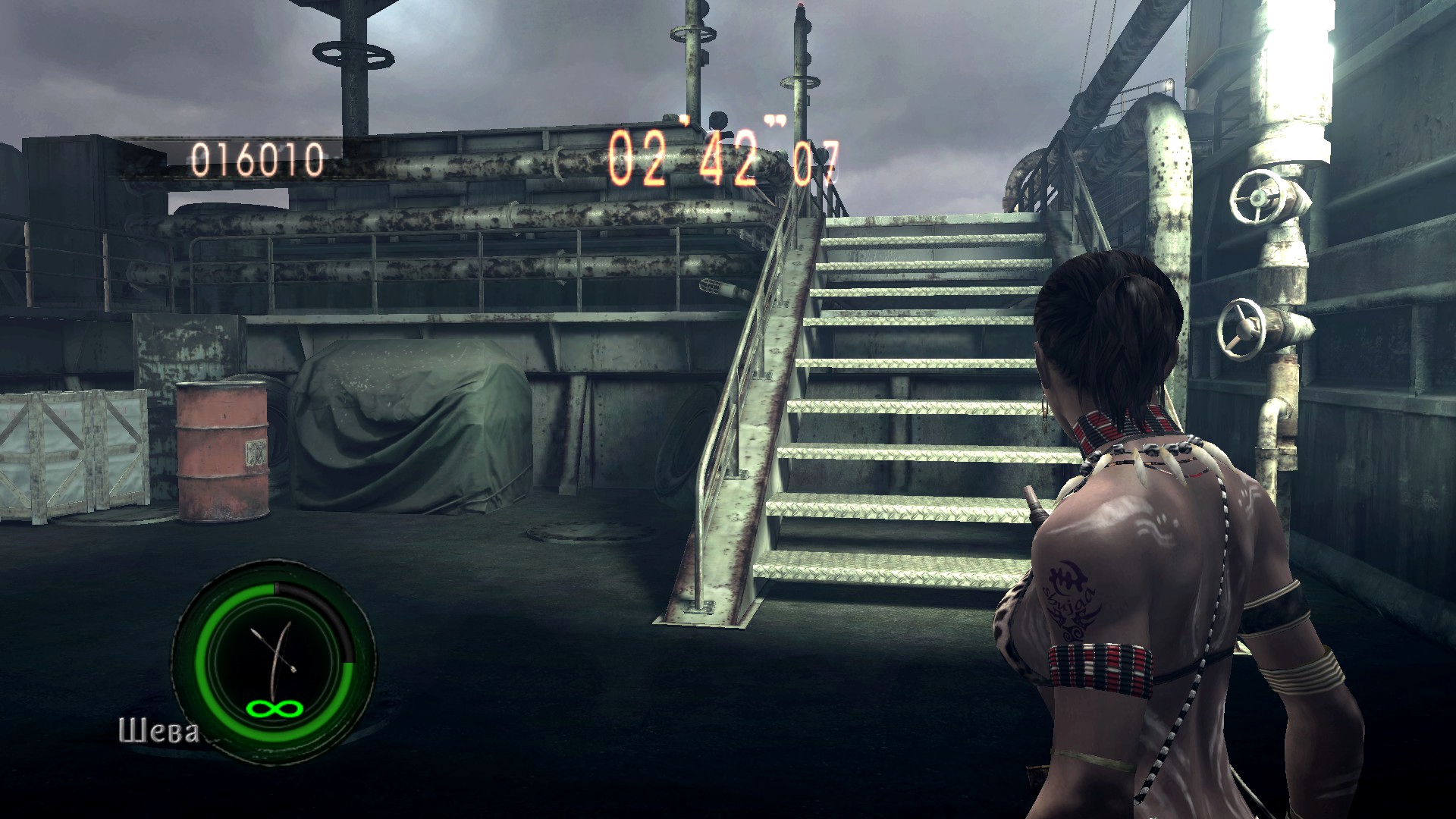 Далее у нас пойдёт Resident Evil 5, не трудно догадаться, что его локации пострадали сильнее всего. Всего в игру были включены пять уровней из пятой части: площадь собраний, шахты, ракетный комплекс, палуба корабля и тюрьма.