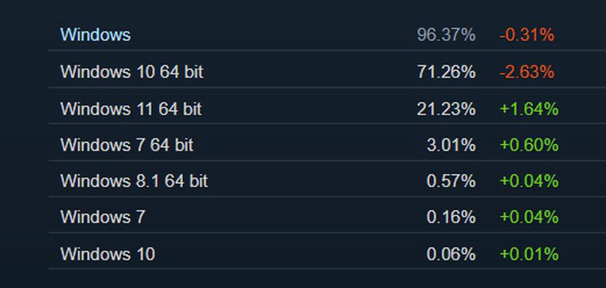 Steam: за 8 месяцев на Windows 11 перешел 21% игроков