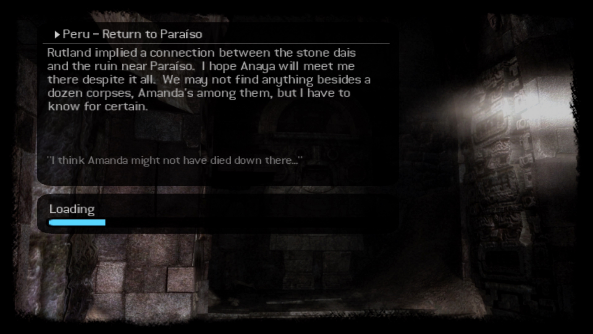 7. Загрузочные экраны. Это странно, но на XBOX 360 отличаются пара загрузочных экранов уровней: присутствует загрузка с силуэтом Лары, отсутствующий в PC версии, отличается загрузочный экран в Перу, во время воспоминаний Лары, а также отличается экран загрузки финальной миссии в Боливии.