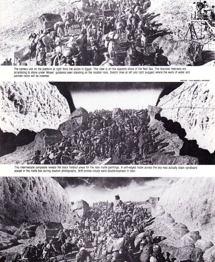 Старейший приём,  основанный на экспонировании плёнки при обратном ходе в съёмочном аппарате. Первый доподлинно известный фильм, в котором решили использовать его  — это драма «Десять заповедей» (1956). Там Моисей, в лучших библейских традициях, должен был разводить руками море. Для достижения такого эффекта было решено проделать ну просто титанический труд, на детальное описание которого в одном старом журнале ушло 14 страниц (CineMagic 31, кому интересно).