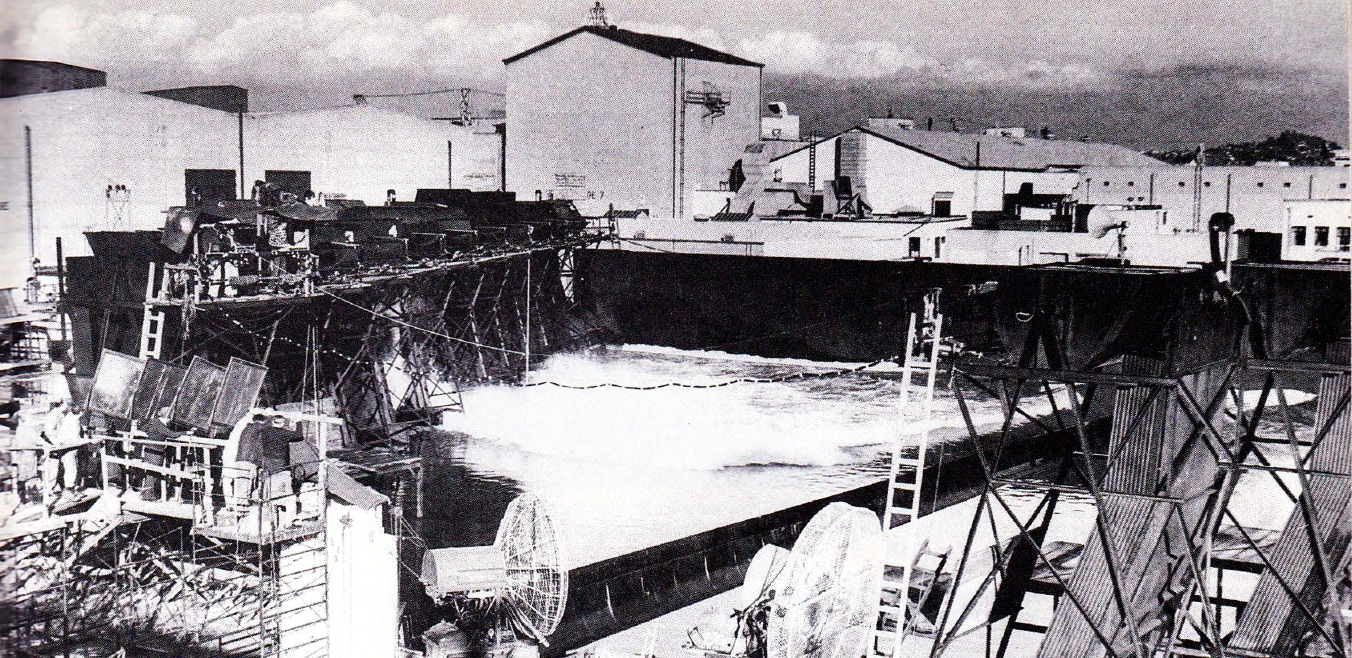 Коротко говоря понадобилось 24 цистерны, 360.000 галлонов воды (1.362.748 литров, что?), десятки скучающих актёров массовки, ещё 1200 галлонов воды и 136 килограммов сухого льда для достоверного звука льющейся воды, бесчисленное количество криков людей, записанных в пещере Бронсон Кейвс, и тонны терпения героев, кто всё это сводил.