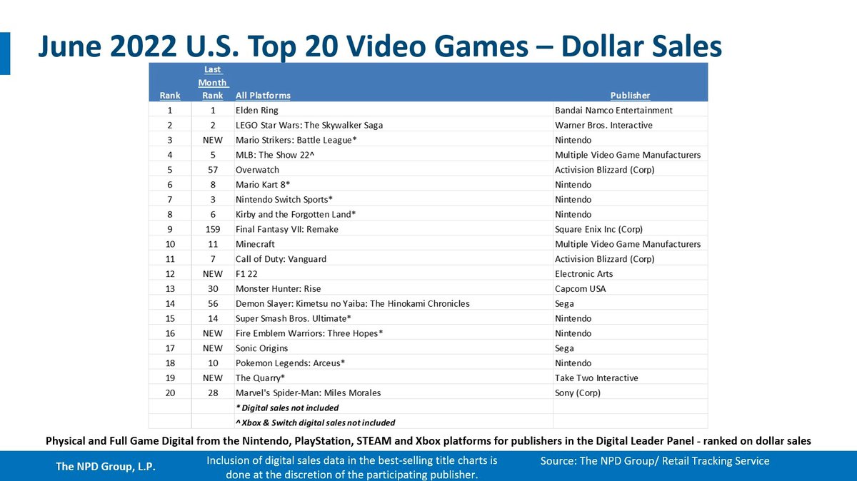 - Самая продаваемая игра месяца — Elden Ring. По выручке она вошла в десятку лучших проектов в истории американского рынка.