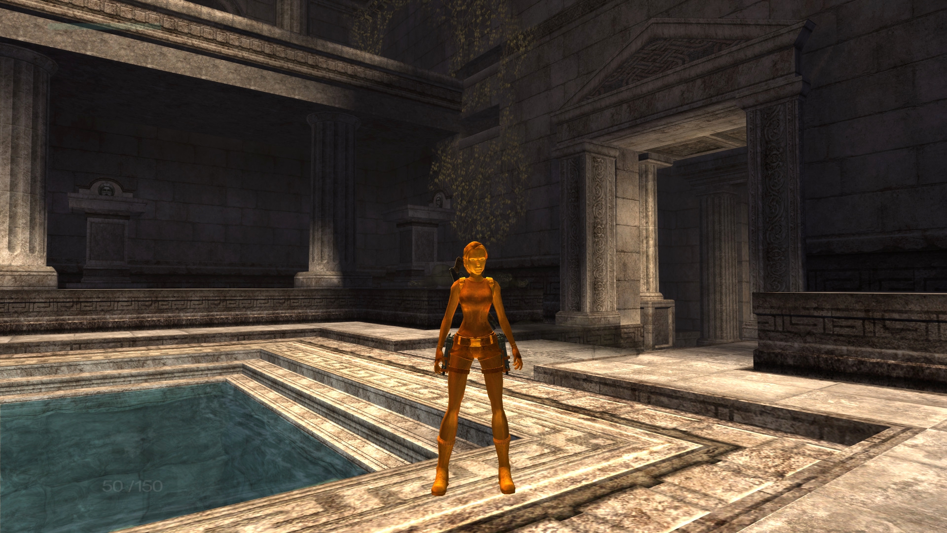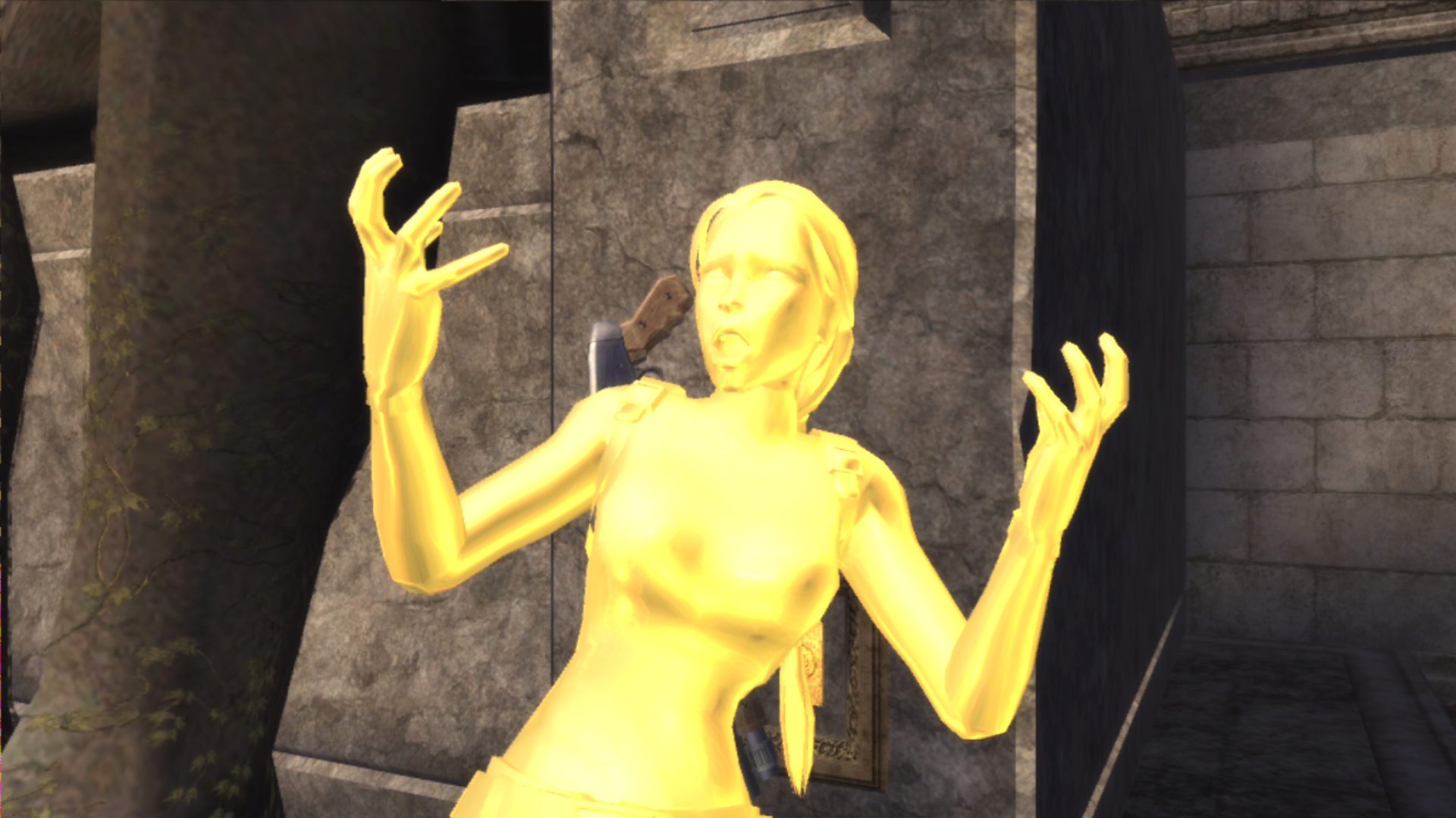 Данный факт также мелькал в одной из прошлых статей. В PC и PlayStation 2 версиях золотой костюм не стыкуется с золотой моделью Лары, если встать на руку Мидаса. Данный недочёт был исправлен и в данной версии, из-за чего модель золотой Лары и её золотой костюм стали идентичными.