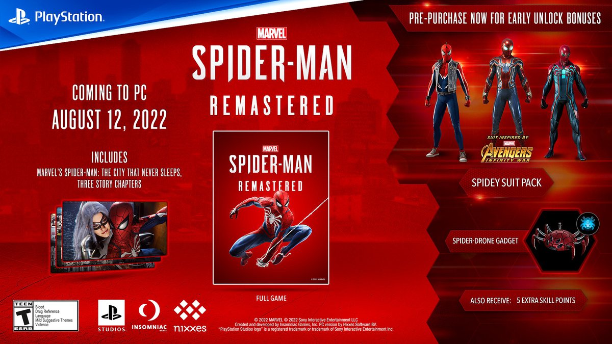 Одновременно разработчики показали бонусы за оформление предзаказа. Игроки получат ранний доступ к трем костюмам для Человека-паука и дрону, а также смогут потратить на улучшение дополнительные 5 очков навыков.