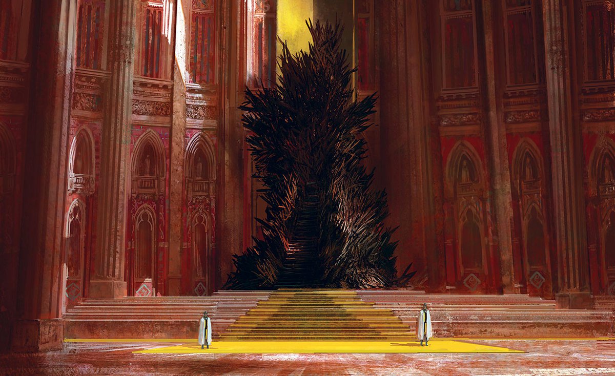Тронный зал был одной из самых сложных вещей, что нам довелось построить: он должен быть иным и одновременно таким же [как в «Игре престолов»]. Мы постарались придумать, как объяснить, почему в [тронном зале] старого сериала не было ни одной статуи.