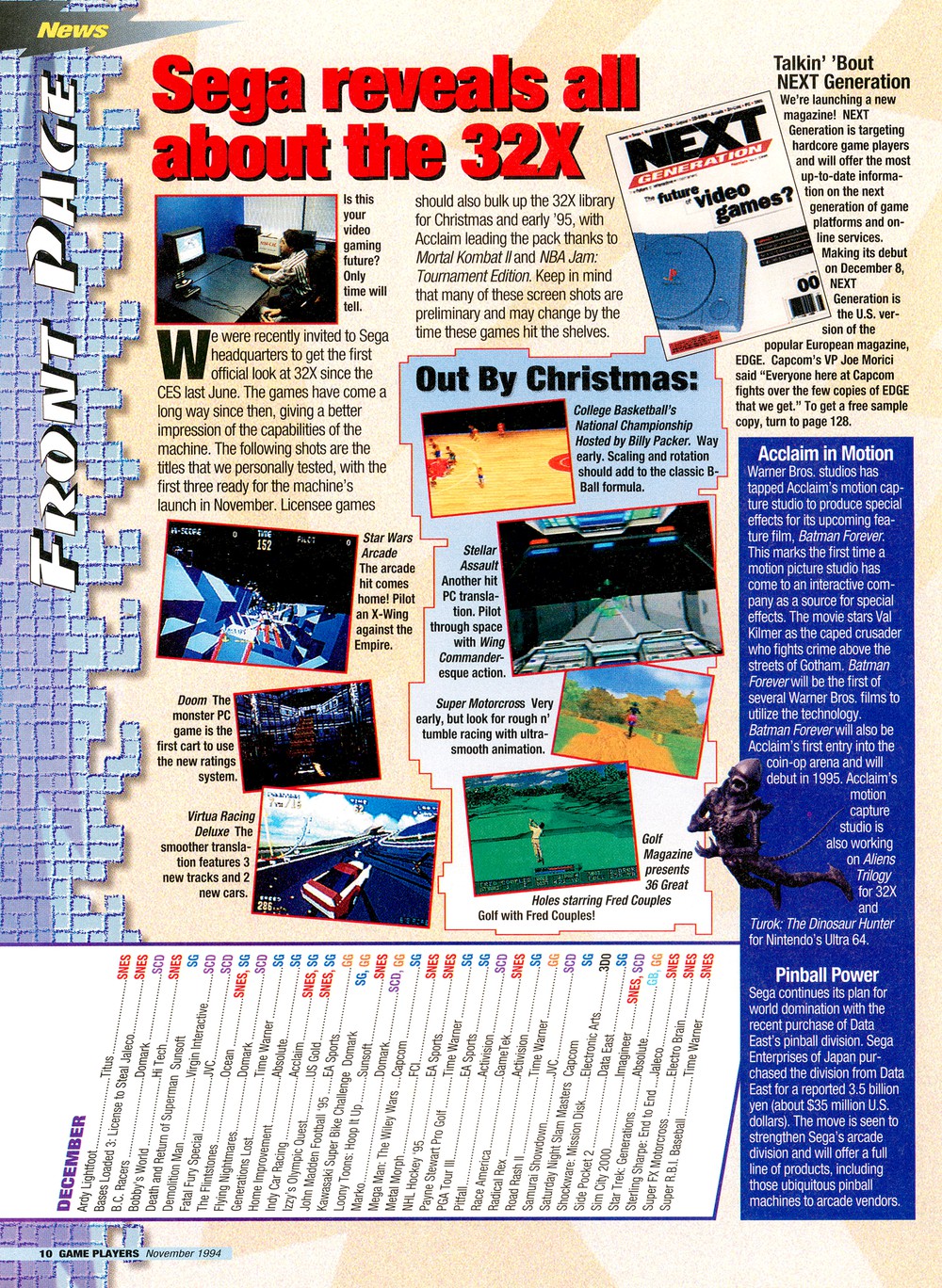 В журналах игра светилась в ноябре и декабре 1994 года, практически перед выходом Sega Saturn.