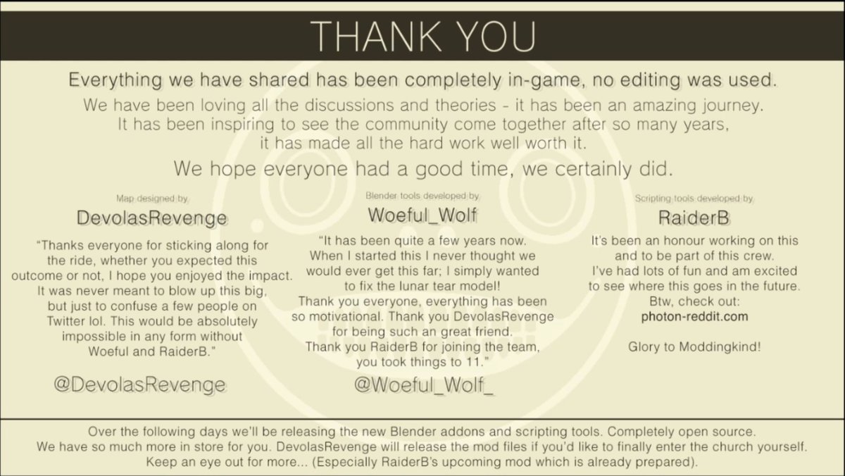 Утром 29 июля реддитор sadfutago, рассказавший об обнаружении в игре нового секрета, провел стрим на Twitch, показав еще одну область, собранную из фрагментов новых ассетов и существующих локаций. В финале трансляции sadfutago признался, что все происходящее — результат работы нескольких моддеров.