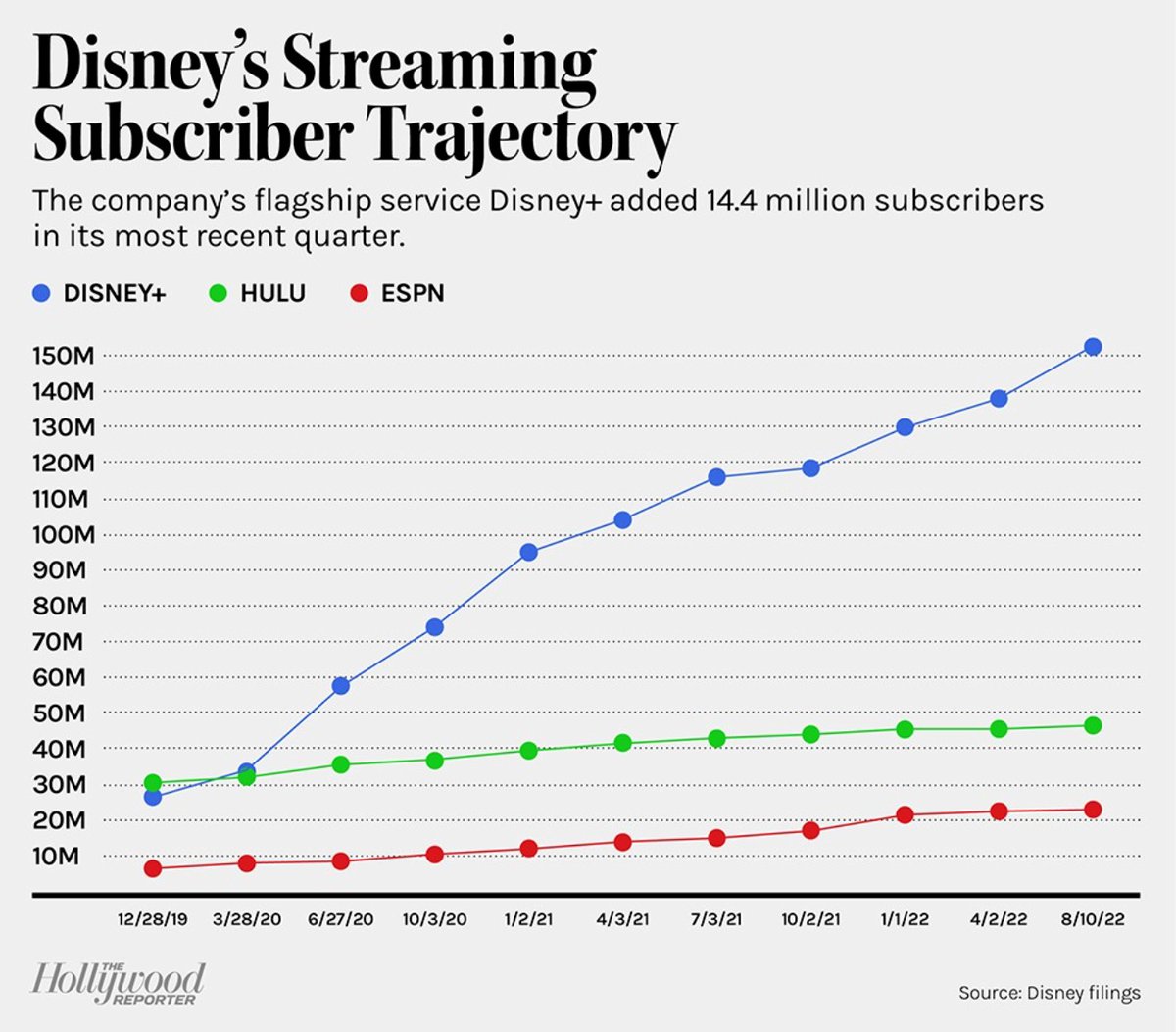 Стриминговый сервис Netflix два квартала подряд теряет подписчиков, но у корпорации Disney все в порядке. За последний квартал аудитория ее сервиса Disney Plus выросла на 14.4 миллиона, до более чем 152 миллионов подписчиков.