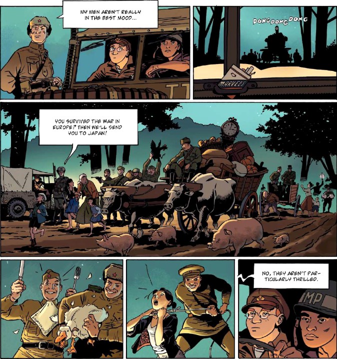 Первые две части комикса посвящены не столько войне, сколько её последствиям. Их действие происходит летом 1945 года уже после капитуляции Германии. Те самые бои в Италии, в которых бригада принимала участие, можно увидеть лишь во флешбеках.