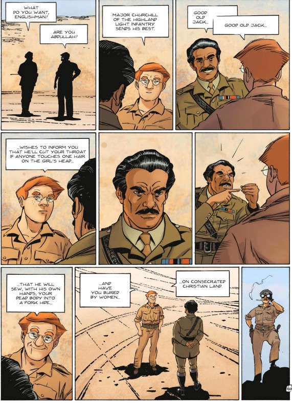 Таким образом, мы, как читатели, немного пленённому немцу посочувствуем. А вот уже среди арабов таких персонажей нет. Когда даже в Call of Duty есть незлые русские. А ещё посмотрите, какие арабы трусы. Стоит сказануть припугнуть британской армией, они только оскалиться и смогут.