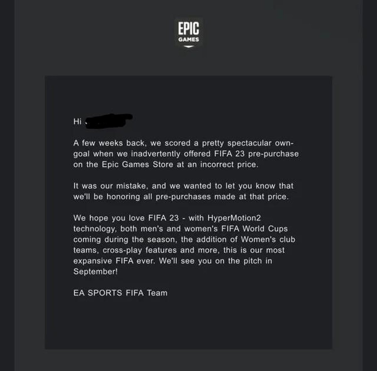 FIFA 23 продавали за 4 рубля в Epic Games Store — купленные копии разрешат сохранить