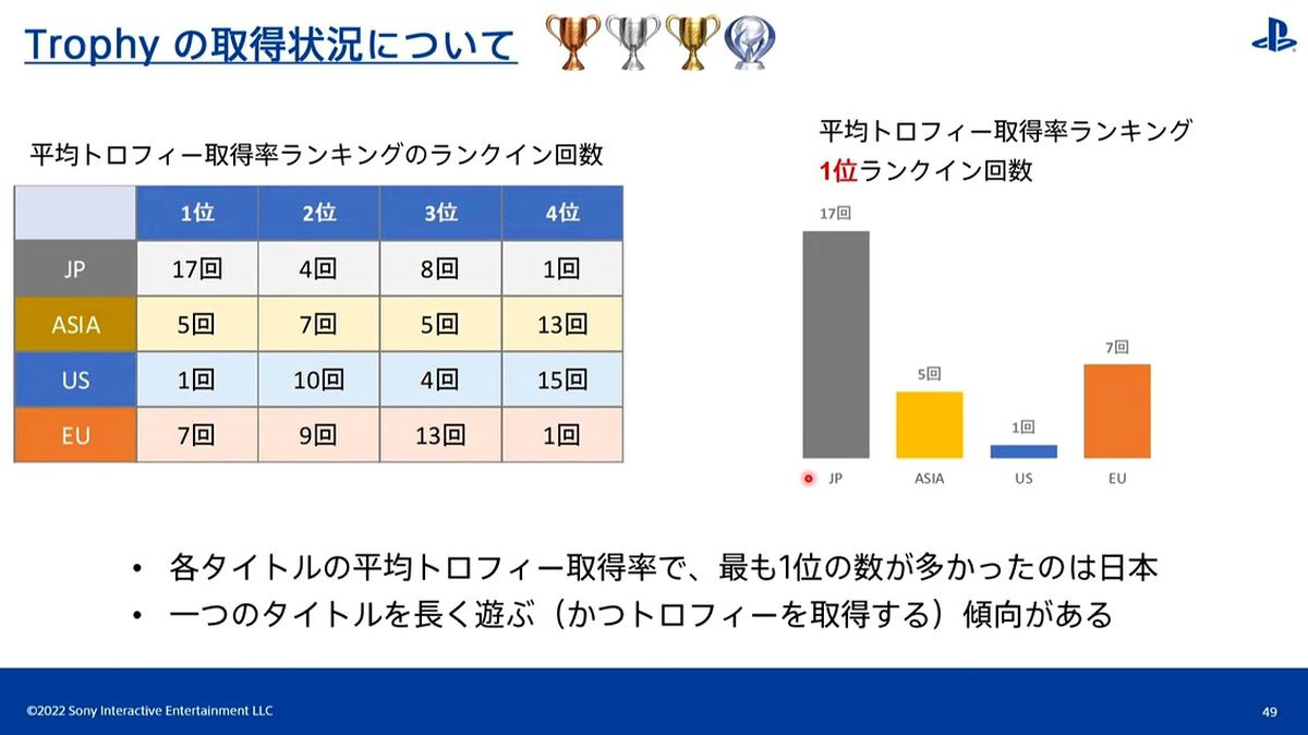 В Sony оценили активность игроков в США, Европе, Японии и Азии по нескольким параметрам. Среди них оказались количество купленных игр, число полученных достижений и платиновых трофеев, среднее время, проводимое в игре.