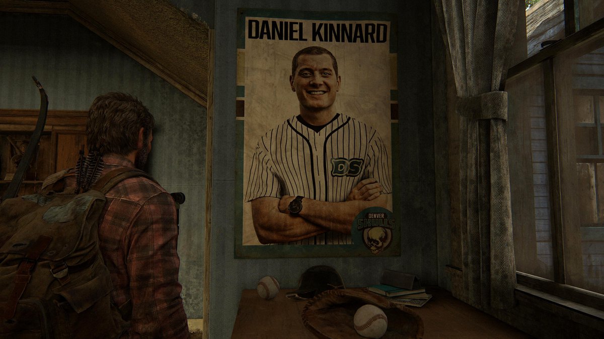 Прогуливаясь по ферме в ремейке The Last of Us, можно наткнуться на плакат с бейсболистом Даниэлем Киннардом из вымышленной команды Denver Skulls. На портрете — не бейсболист, а один из разработчиков ремейка.