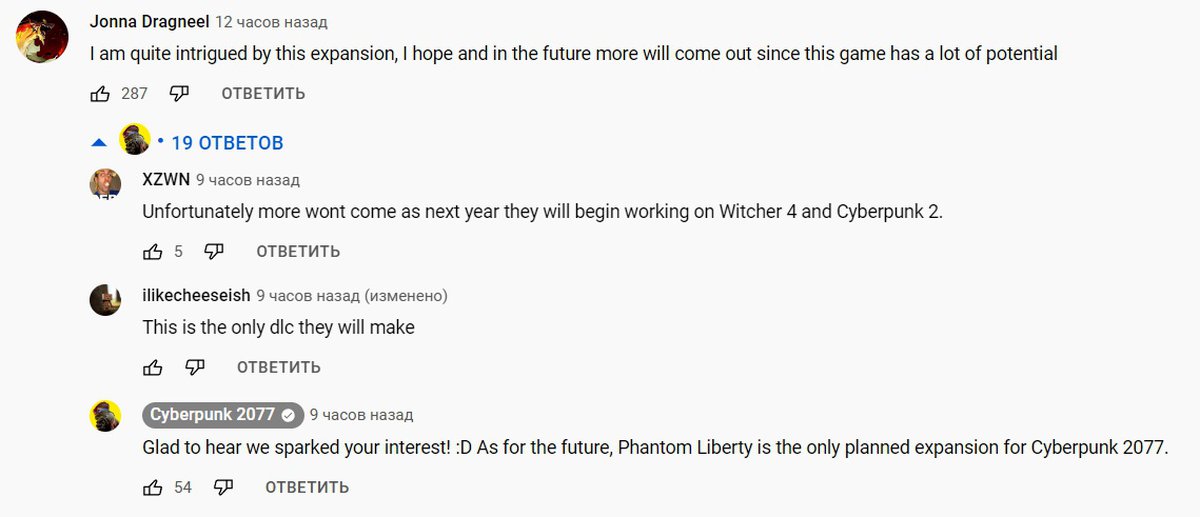 Вопрос: сколько DLC вы планируете выпустить для Cyberpunk? Будет ли пострелизная поддержка такой же, как у The Witcher 3?