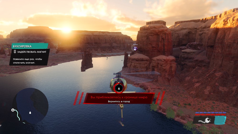 Но, помимо пустого города – игра сильно ограничена в игровой зоне. Стоит вам попытаться сократить полёт через пустыню и свернуть чутка в бок – всё, мир кончился, возвращайся! Напомню, что в прошлых частях надо было лететь далеко вдаль за город, прежде чем нам покажут сообщение о неигровой зоне.