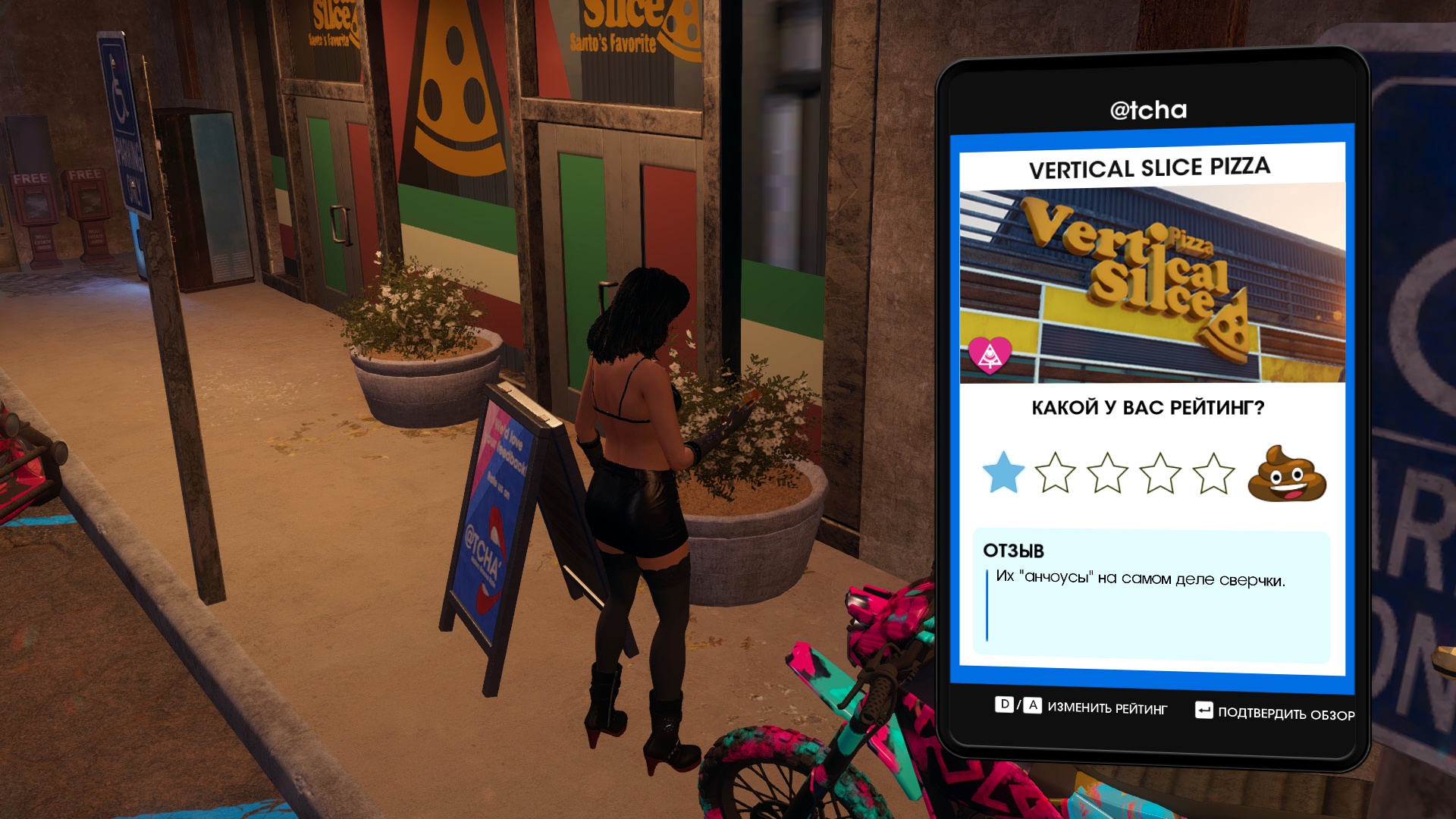 Из новых побочных заданий мне понравилось оставлять гневные отзывы на заведения. Отзывы провоцируют банды отлупить вас... Вот оно – токсичное комьюнити!