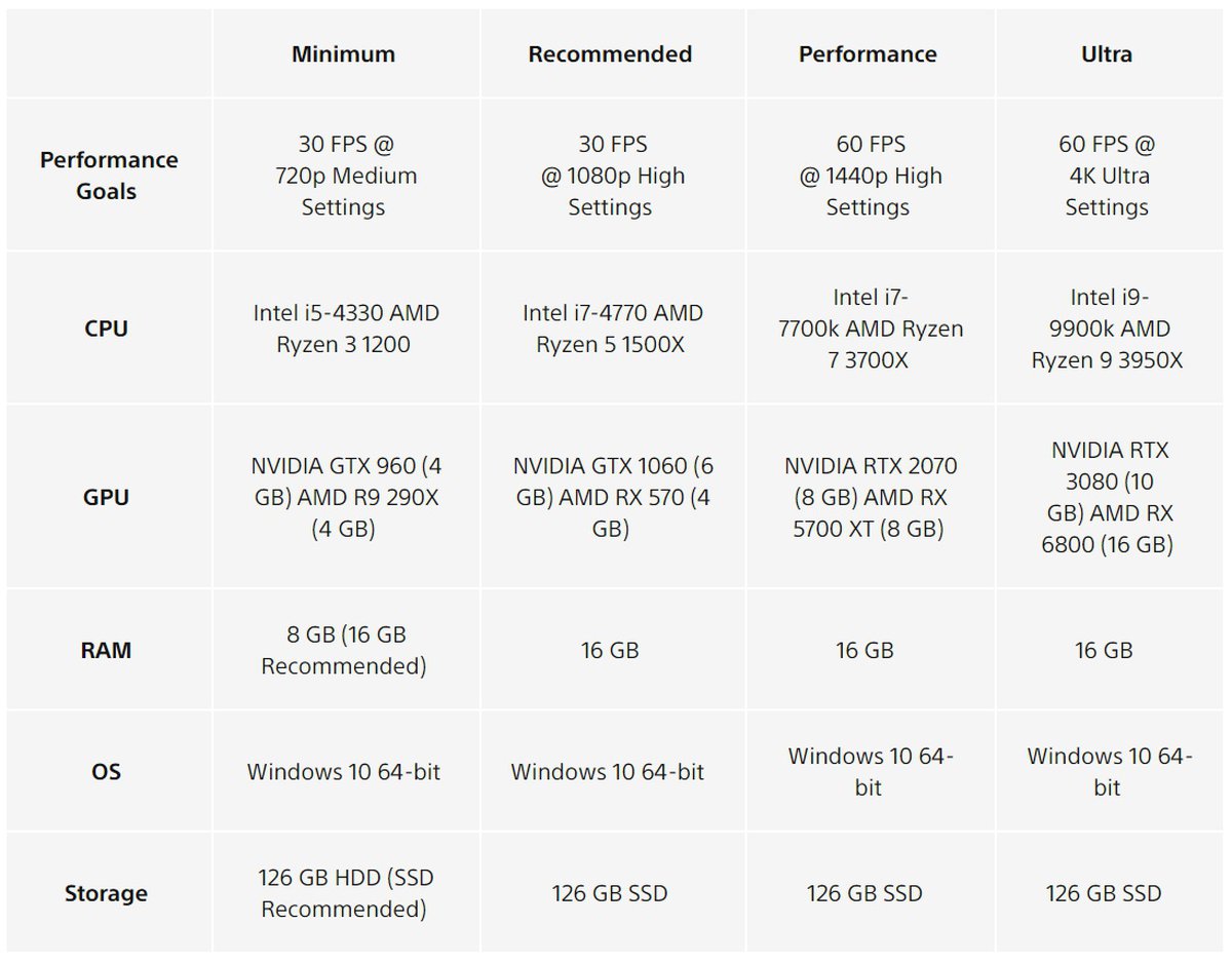 Вместе с трейлером были опубликованы полные системные требования обеих игр. Чтобы поиграть в разрешении 4К на максимальных настройках, понадобится GeForce RTX 3080 и Intel Core i9-9900K, но минимальная конфигурация гораздо слабее.