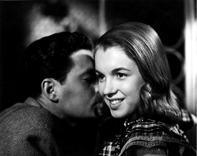 Хождение по мукам и приёмным семьям заканчивается, когда актрисе исполняется 16 лет. Она знакомится с парнем намного старше её и решает выйти за него замуж. Главной причиной этого решения стал тот факт, что ей больше не придётся возвращаться в сиротский дом или в очередную семью. Переехав в новый дом, она бросает школу и устраивается на работу на авиационный завод фирмы Radioplane Co.