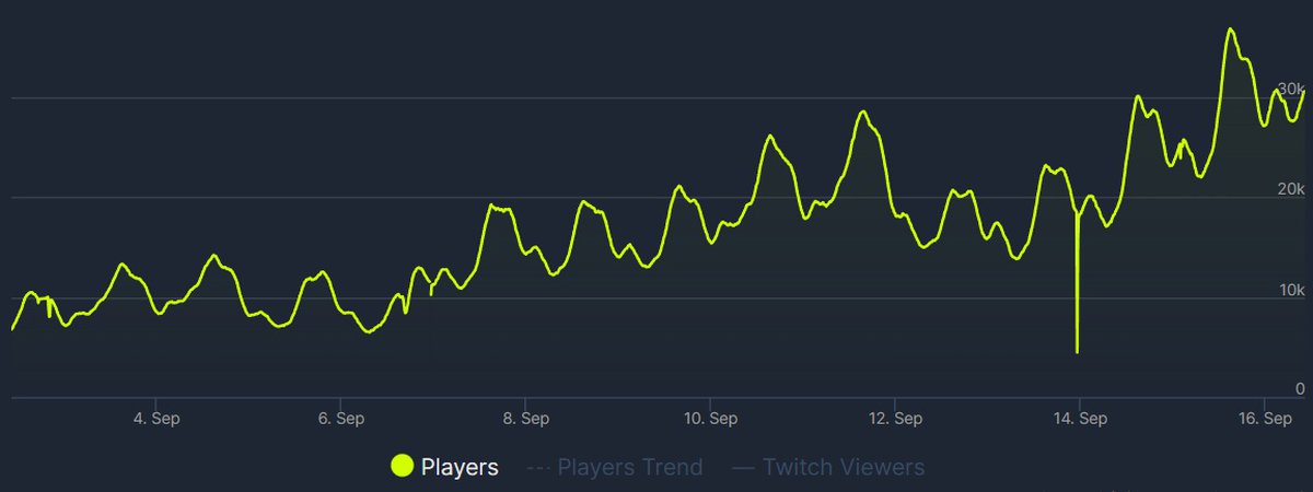 Вечером 15 сентября в Steam-версию Cyberpunk 2077 одновременно играло почти 37 тысяч человек. Неделей ранее этот показатель почти достигал 20 тысяч человек, в начале сентября пиковый онлайн был на уровне 10 тысяч человек.