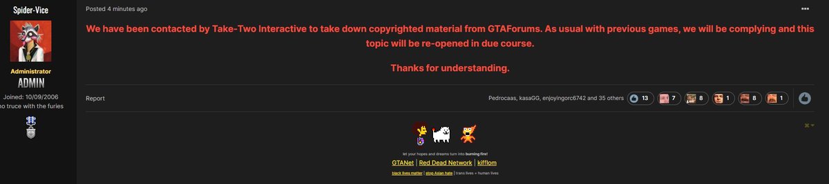 - Начинают действовать юристы Take-Two. Оригинальный пост на GTAForums удален по запросу компании, введен запрет на публикацию слитых роликов или ссылок на них. Но обсуждать утечку все еще можно.
