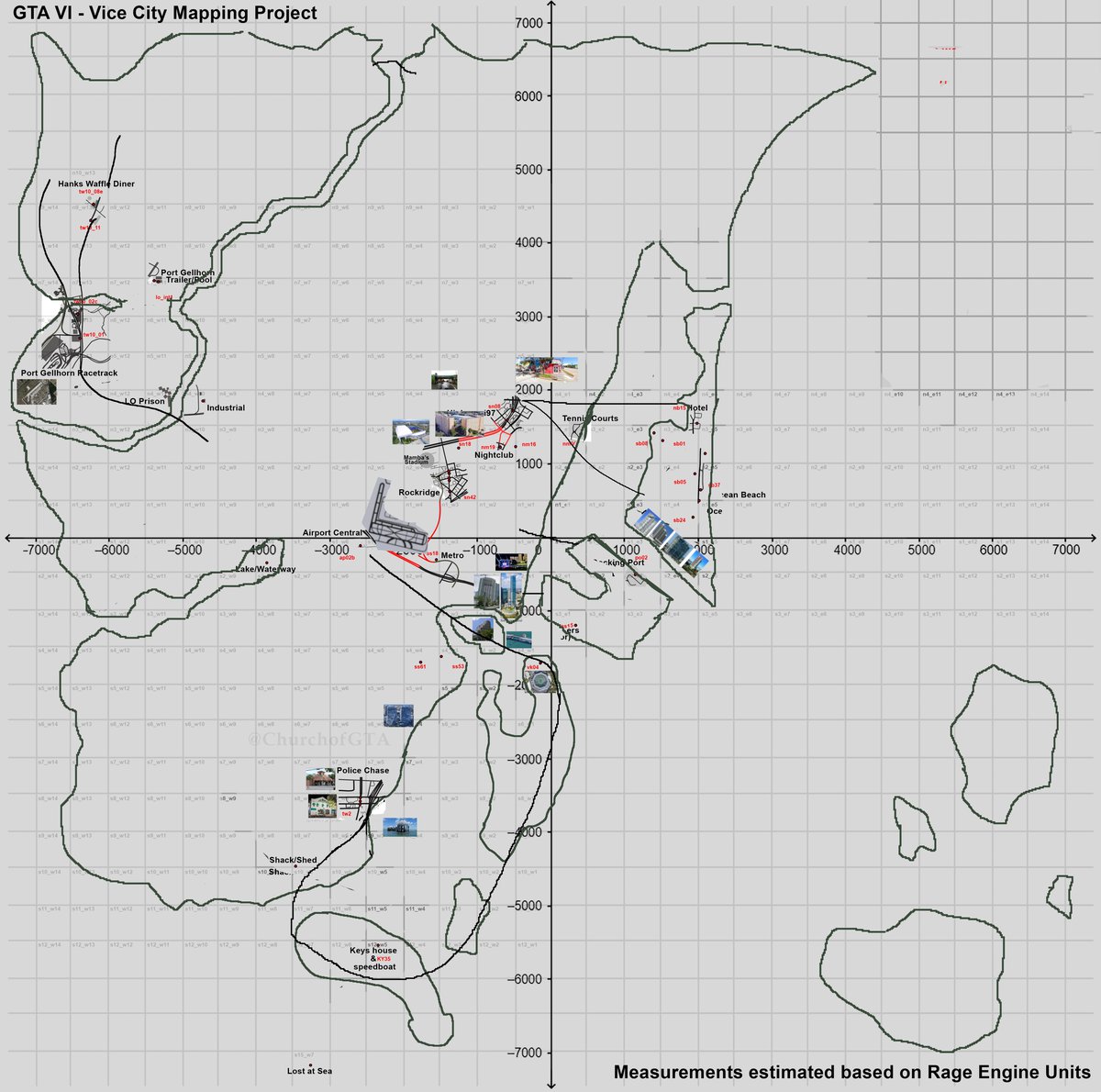 В утекших роликах с демонстрацией ранней версии Grand Theft Auto 6 есть не только тестовые уровни и интерьеры, но и достаточно много локаций из открытого мира. Фанаты воспользовались этим, чтобы попытаться нарисовать карту.