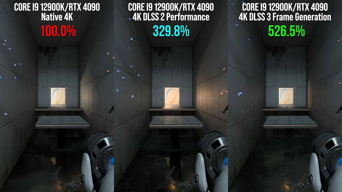 - В особо удачных случаях DLSS 3.0 может увеличить частоту кадров в 5 раз. Например, так было в Portal RTX.