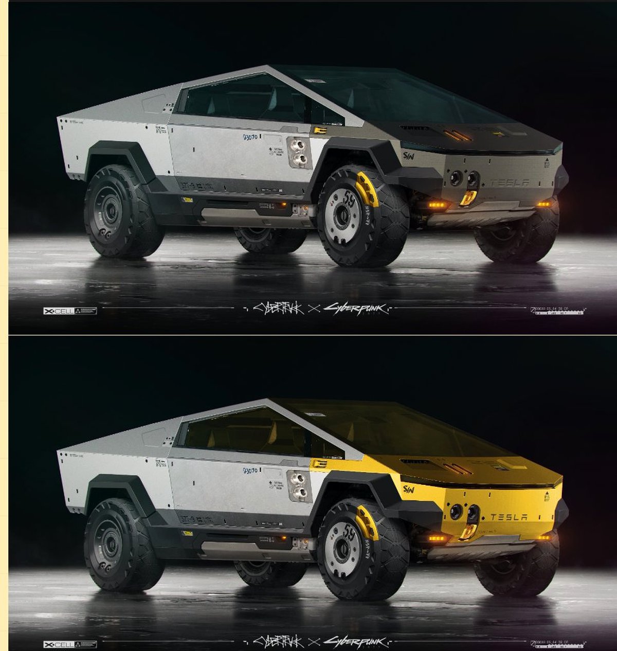 Отвечая на твит руководителя Tesla Илона Маска, посвященный Cybertruck, разработчики Cyberpunk 2077 опубликовали пару изображений с Cybertruck в стиле Cyberpunk 2077. Судя по алиазингу, на изображения попали модели, а не арты автомобиля.