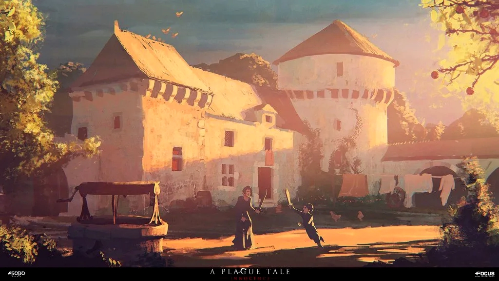 И ладно бы, если главные герои — Амиция и Хьюго — изначально были сиротами и уже жили в условиях эпидемии. Если вы играли в игру, то наверняка помните первые несколько миссий. Залитый солнечными лучами двор, приветливые люди, пышущий зеленью лес и мечты полакомиться сочным хряком. Амиция если и держит в руках пращу, то только чтобы сбить с веток пару спелых яблок.