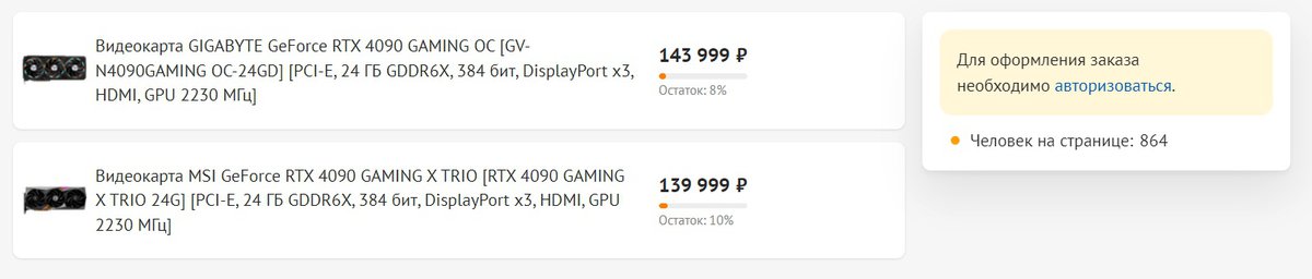 Цены, предложенные ритейлером, оказались достаточно низкими. Днем ранее GeForce RTX 4090 можно было заказать на Ozon и Pleer.ru примерно за 170 тысяч рублей. Сейчас самая дешевая карта на Ozon с доставкой 16 октября стоит 160000 рублей.
