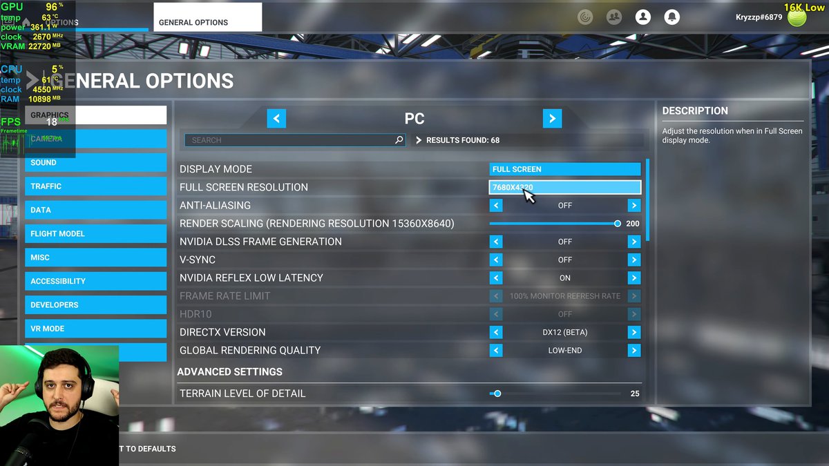 В разрешении 8K GeForce RTX 4090 справляется с Microsoft Flight Simulator достаточно уверенно: можно получить 30 кадров в секунду даже без использования DLSS. Разрешение 16K оказалось совсем другой историей.