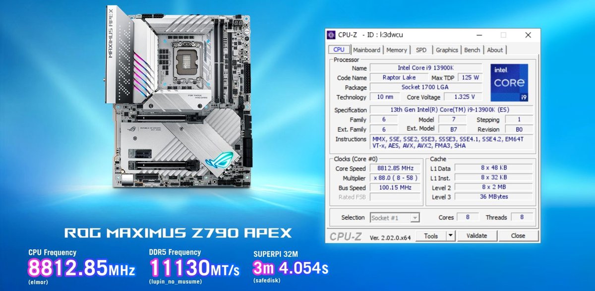 Топовому процессору Intel Core i9-13900K, поступившему в продажу 20 октября, удалось побить рекорд по разгону, установленный больше 8 лет назад. Оверклокер Elmor разогнал процессор до 8812.85 МГц.
