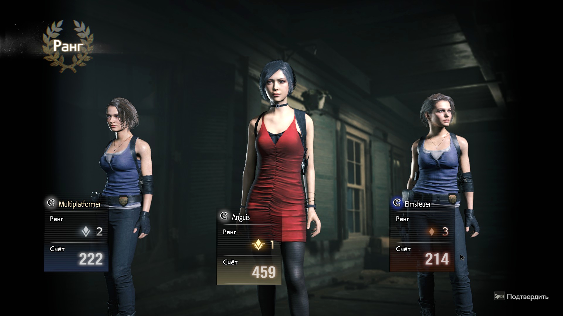 Знаете, мне не стоило писать этот пункт... Почему? Да потому, что режим всего один! Да, в игре, которая вышла практически через год после релиза 8-ой части – имеет только один режим... Режим этот – битва за очки, вам надо убивать как можно больше и чаще, чтобы вырваться в таблицу лидеров. Опять же повторяюсь, всем плевать кого вы убиваете: Леон может убить Криса, Тиран начнёт замес с Бейкером, плесневик взорвёт Тирана и Джилл... За любую смерть противника начисляют очки и чем больше серия убийств – тем больше очков вы получите. Однако, за смерть героя отнимают 5 очков рейтинга, но это не мешает игрокам устраивать мясорубку.