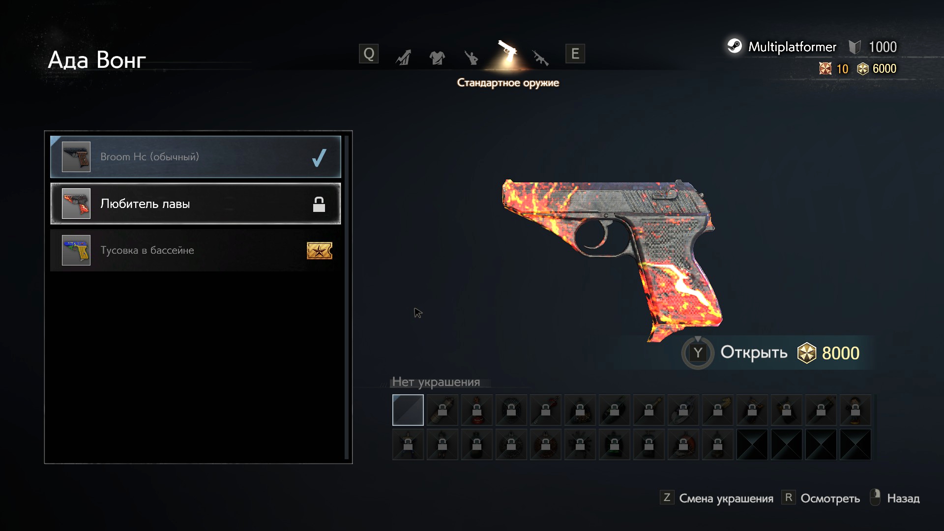 Стандартное оружие для каждого персонажа имеет покупаемые расцветки.