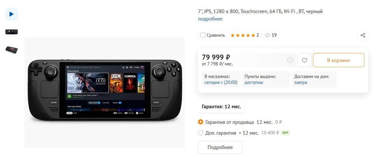 Мы отслеживали доступность консоли на всем протяжении первой половины дня 25 октября. Steam Deck неизменно была в наличии: устройство предлагали либо доставить 26 октября, либо забрать в одном из магазинов Москвы уже сегодня.